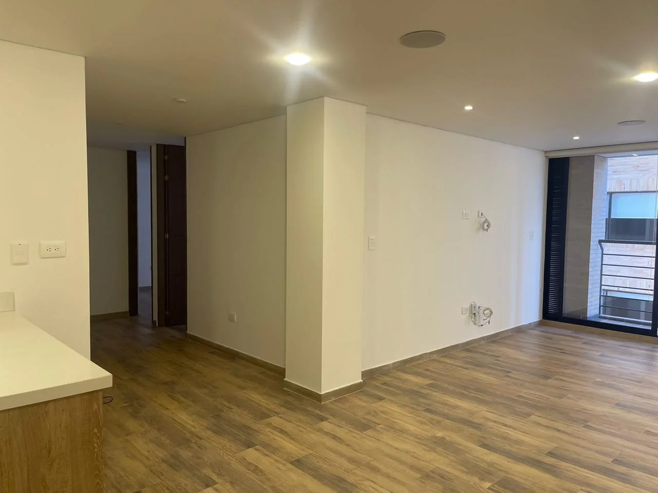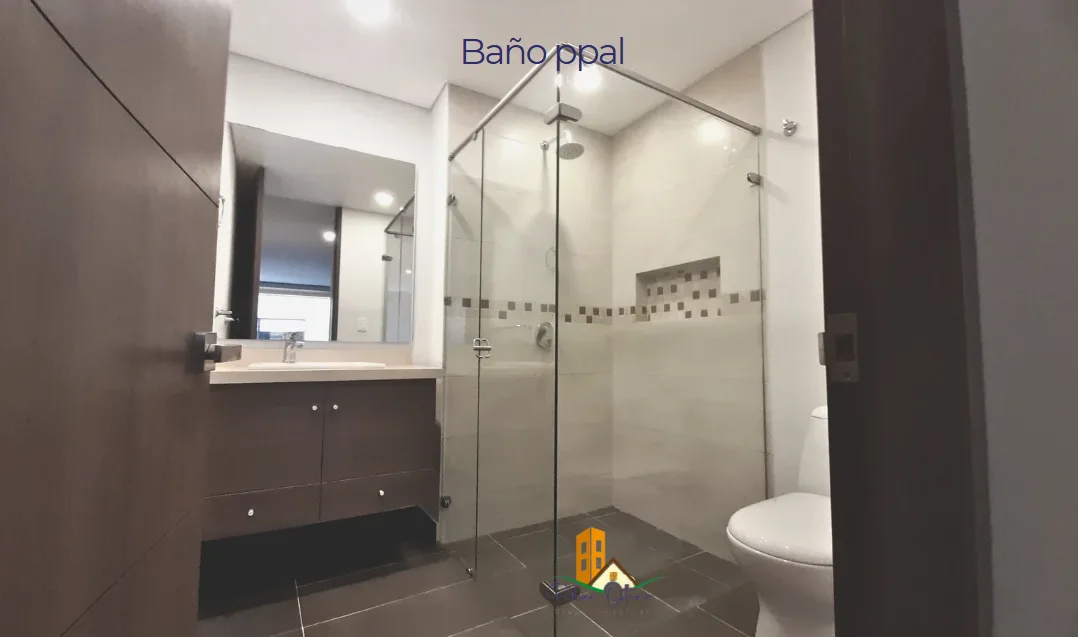 Sala con balcón y sonido multizona, 2 habitaciones, 2 baños. Tiene un amplio hall de alcobas que perfectamente se puede adecuar como espacio para homeoffice.