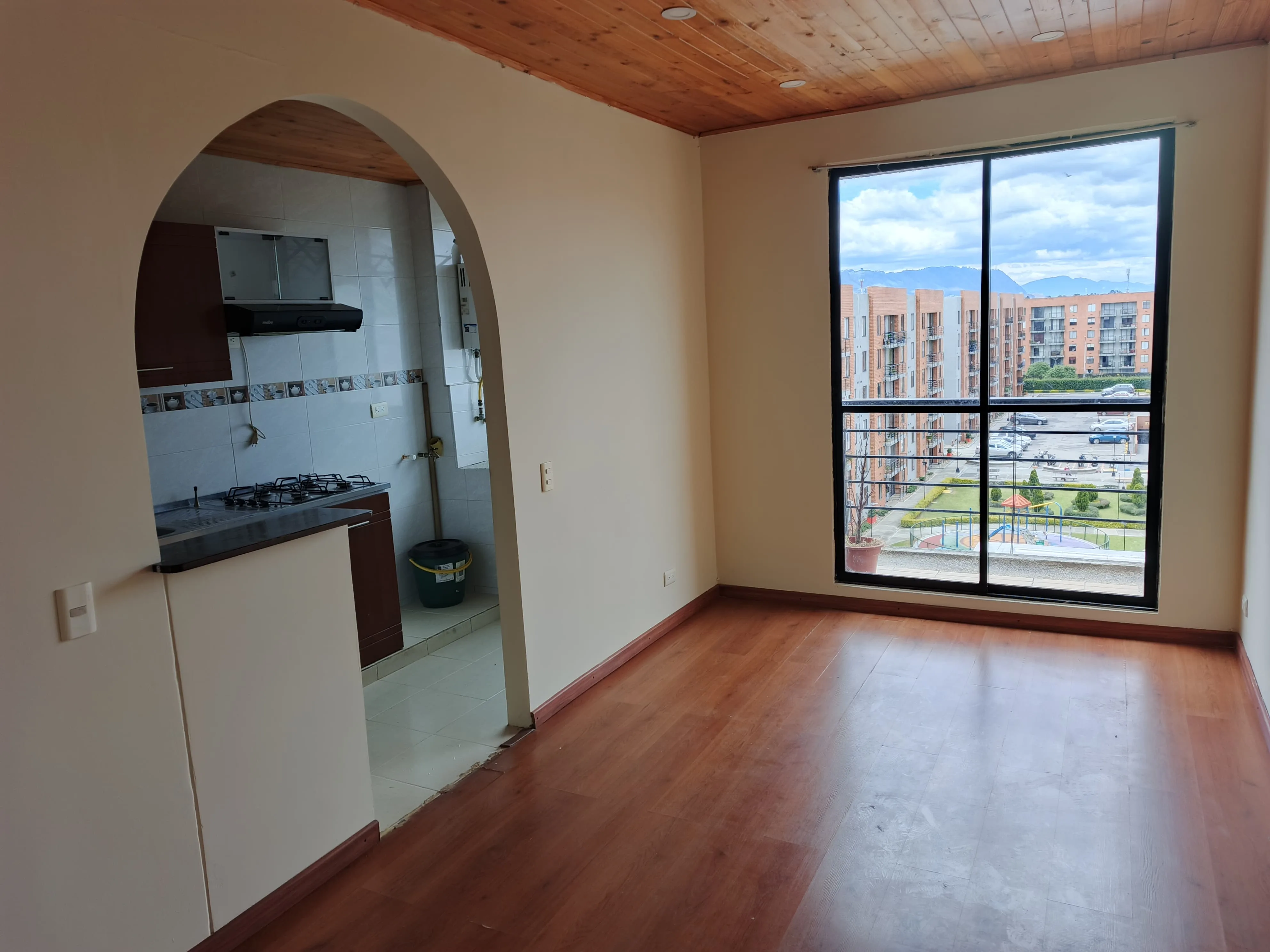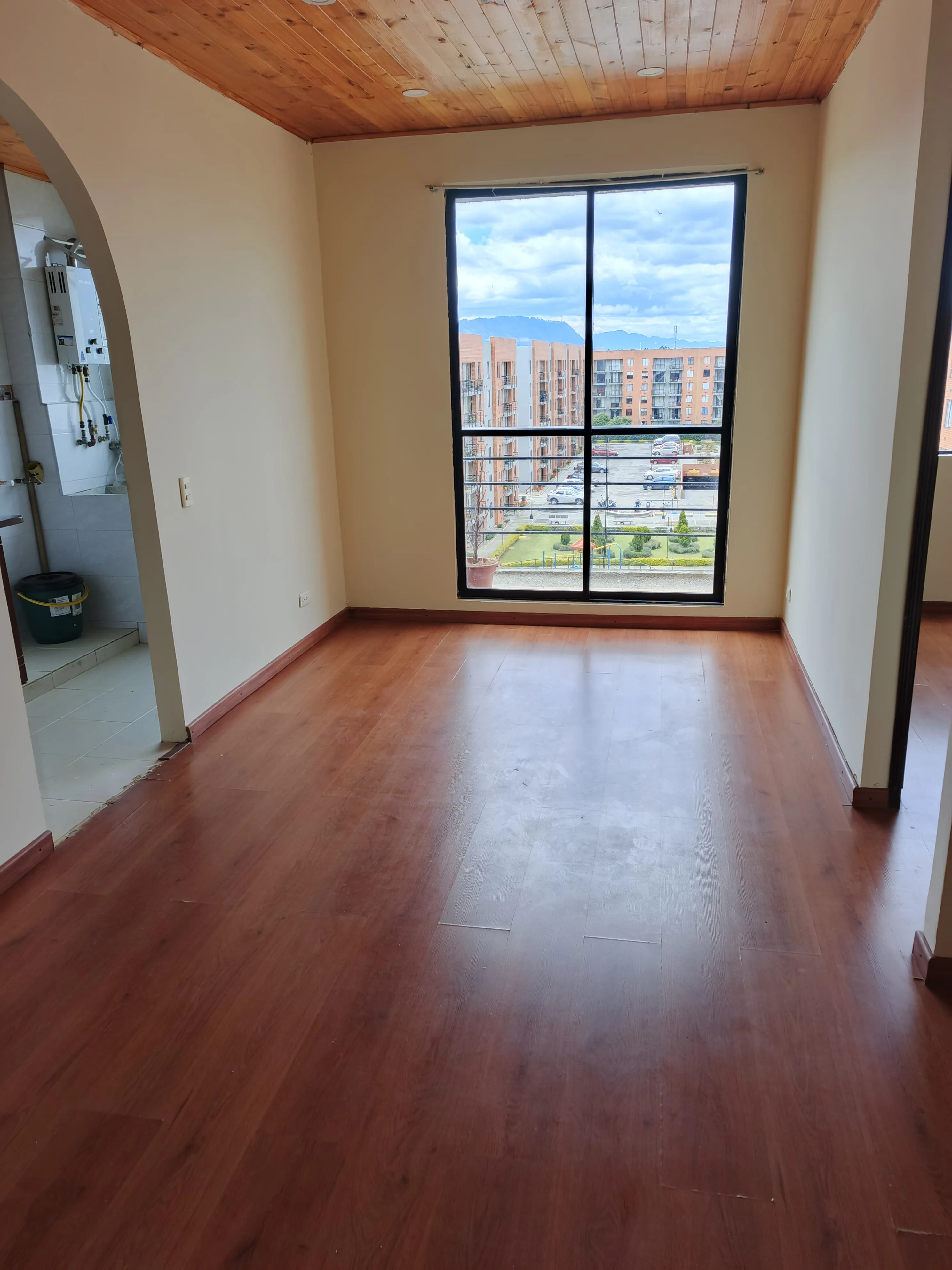 Hermoso apartamento bien ubicado con excelente iluminación, consta de dos habitaciones, sala comedor, cocina, zona de lavandería, un baño con división de vidrio, piso laminado, cerca a centros comerciales, parques, colegios, supermercados.