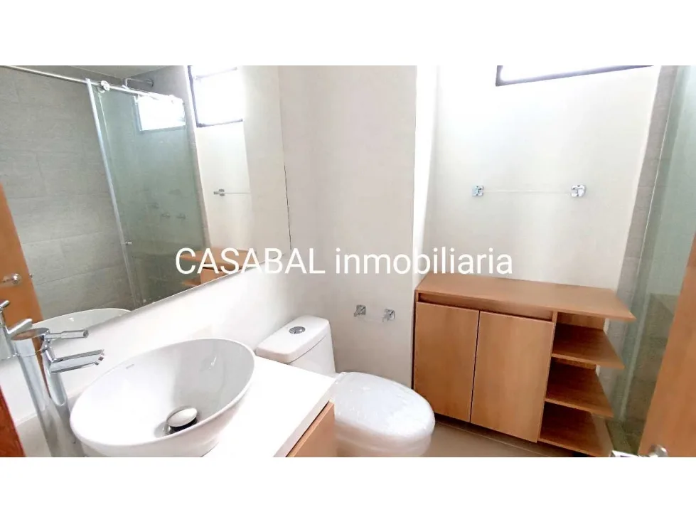 Casabal inmobiliaria arrienda hermoso apartamento para estrenar en chía cuenta con una excelente ubicación ya que se encuentra en un sector tranquilo y residencial, le ingresa el sol de la mañana, consigue transporte público enfrente, a pocos metros de la variante y de la zona histórica, cerca a centros comerciales, centros de salud, universidades y colegios este hermoso apartamento está en 6 piso con ascensor y cuenta con 60 metros con tres habitaciones, habitación principal con baño independiente, dos habitaciones auxiliares, baño social completo, espacio para estudio, sala comedor con balcón, cocina totalmente integral y equipada, barra estilo americano, zona de lavandería independiente y ventilada y adicional un parqueadero cubierto y un depósito Agenda lo más pronto una cita con nuestros agentes inmobiliarios y disfruta de este hermoso apartamento para tu familia.