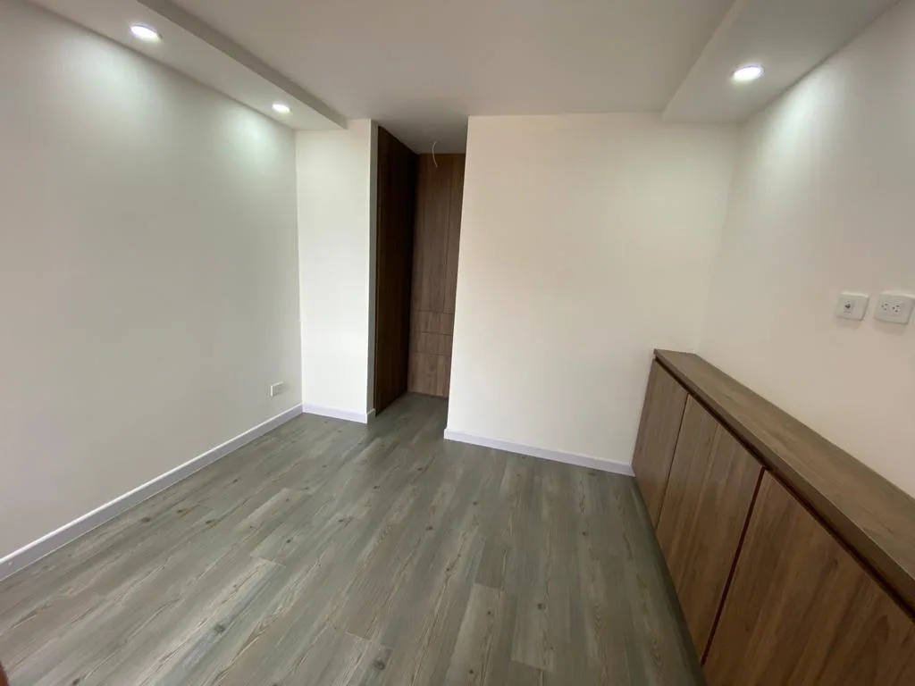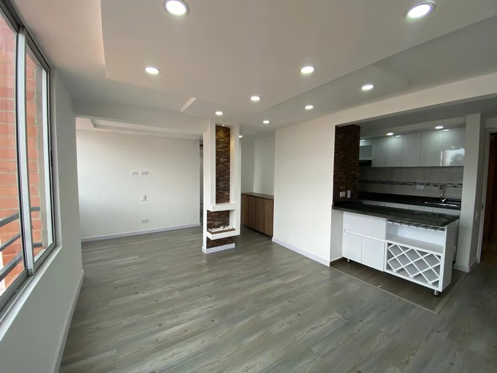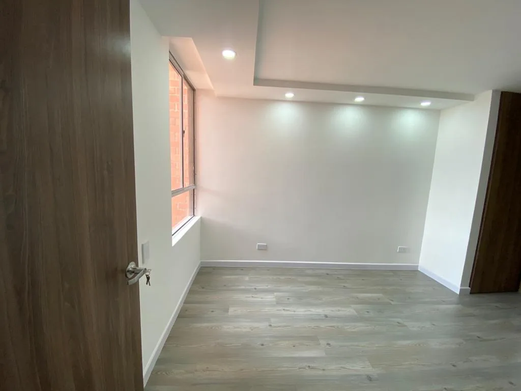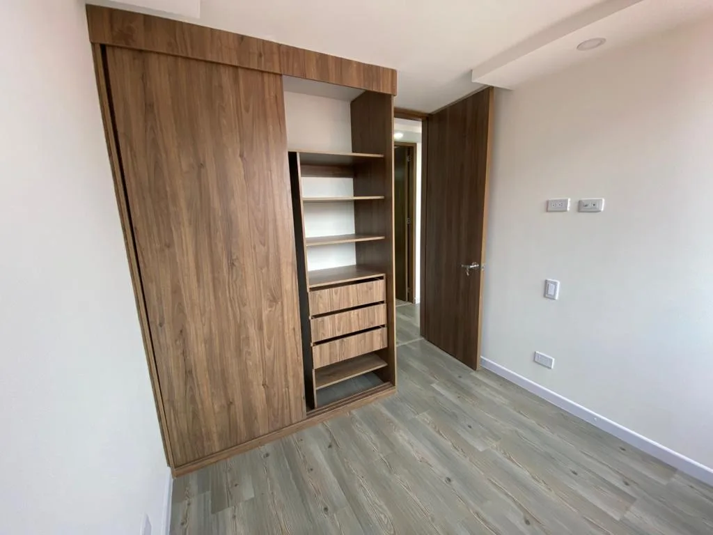 Conjunto, Iluminado, Piso 3, Acceso por escaleras (No ascensor), 2 alcobas con closet, estudio independiente abierto, 2 baños completos, salon comedor, cocina integral con gas natural, zona de lavandería con calentador a gas, Piso madera laminada, encortinado, estrato 3, parqueadero comunal. Disponible a partir del 1 de diciembre