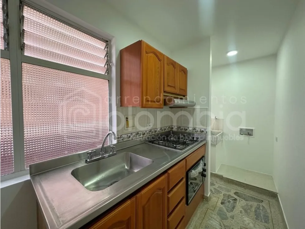 Apartamento en Arriendo, El Portal - Envigado con 3 habitaciones, 3 clósets, 2 baños, sala comedor, cocina integral, red de gas natural, zona de ropas y balcón. Parqueadero y cuarto útil. Área privada de 75m².
