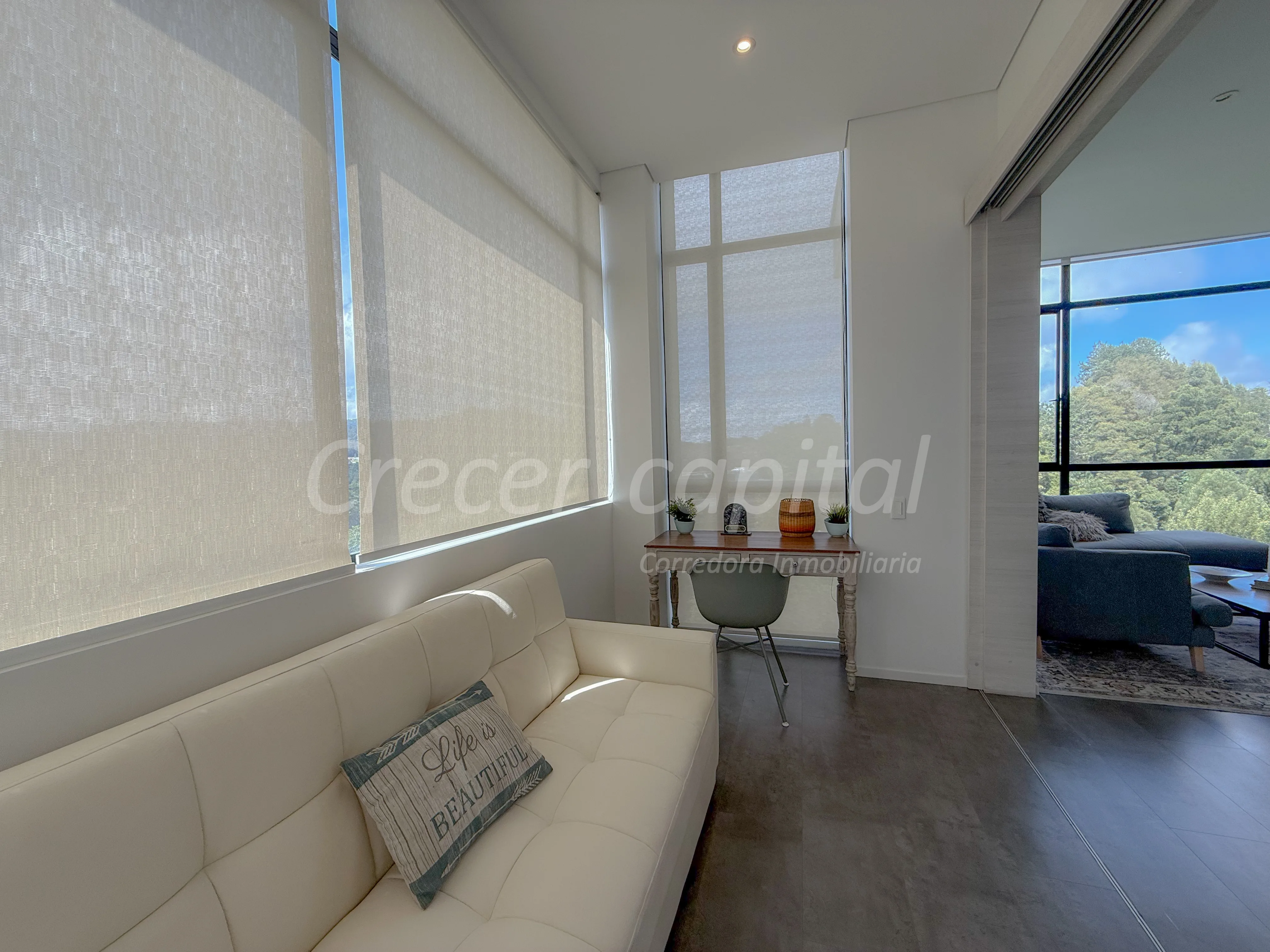 Disfruta del confort y la elegancia en este espectacular apartamento amoblado de 89 m2. Cuenta con 1 habitación principal con baño privado y vestier, además cuarto adicional para adaptar como estudio o habitación simple, y baño social. La cocina es abierta, moderna y funcional, integrada a una acogedora zona de sala-comedor. También incluye una sala de TV independiente, ideal para el entretenimiento o el descanso. Uno de sus grandes atractivos es que cuenta con ventanal de piso a techo con una hermosa vista hacia Las Palmas, perfecto para compartir momentos especiales en buena compañía. Dispone de 2 parqueaderos y cuarto útil. Ubicado en una unidad residencial de alto nivel que ofrece una excelente zona común piscina climatizada con dos jacuzzis, baño turco, salón de masajes, gimnasio completamente dotado, guardería, cancha de squash, zona BBQ, zona para mascotas y dos salones sociales ideales para eventos y reuniones. Ubicación estratégica a tan solo 20 minutos de Medellín y del Aeropuerto Internacional José María Córdova.