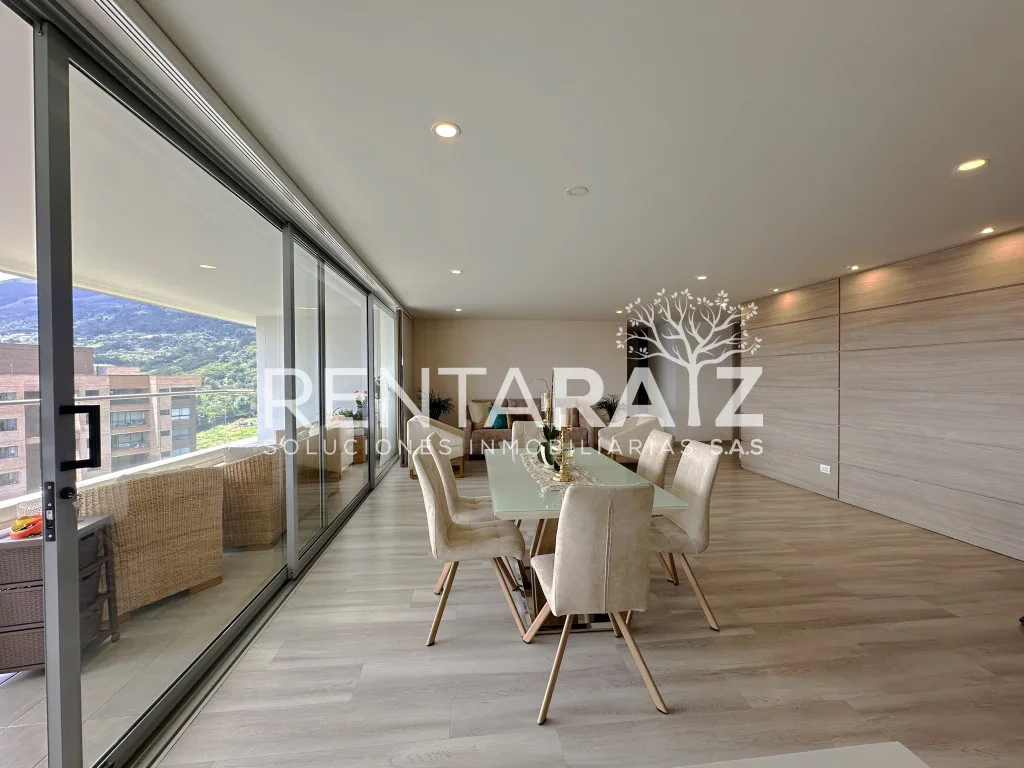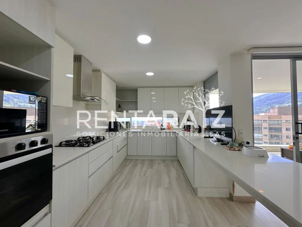 ESPECTACULAR APARTAMENTO DE LUJO CON HERMOSOS ACABADOS Y UNA MARAVILLOSA VISTA DE LA CIUDAD. Puntos de referencia: a 4 minutos del centro comercial City Plaza, a 6 minutos del mall San Lucas, a 5 minutos del parque de Envigado, cerca de; bancos, restaurantes, transporte publico integrado, colegio, clínica, supermercado. Unidad residencial; piscina climatizada, sauna/turco, salón social, gimnasio, áreas verdes, seguridad 24 horas, juegos infantiles. Apartamento; tiene 3 espaciosas habitaciones (todas con baño y vestier), sala comedor independientes con hermosos acabados y una excelente altura, 2 estudios o sala de tv, cocina con isla tipo americana, balcón principal con muy buen espacio y una vista increíble, 2 parqueaderos y cuarto útil. Características; acabados de lujo, excelente estado, iluminación natural, fácil rutas de acceso.