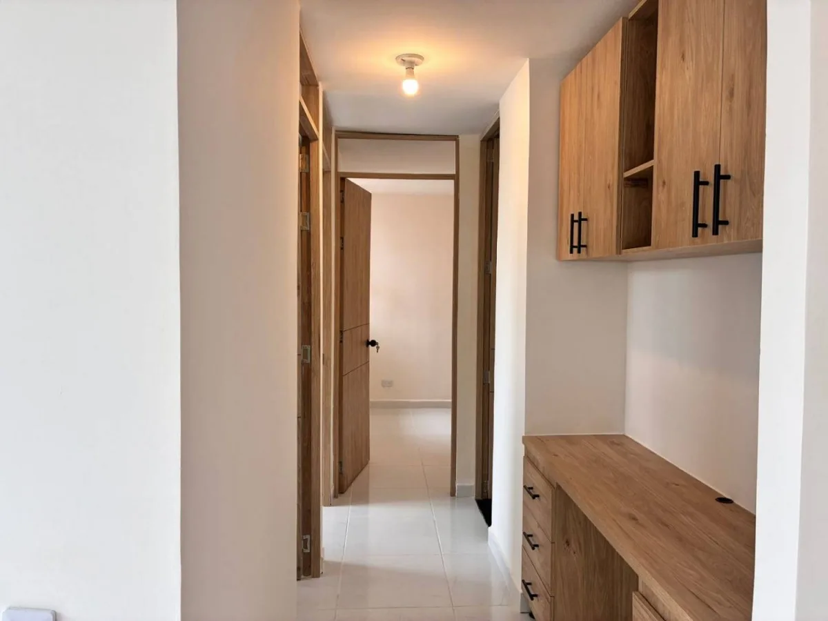 Moderno y acogedor apartamento para estrenar en el conjunto residencial Terra piso noveno y un area de 53 metros, ideal para familias, parejas o profesionales. cuenta con tres alcobas, dos baños baños, sala-comedor con buena iluminación natural, cocina semi integral equipada y zona de lavandería. ubicado en una zona residencial tranquila y segura, cerca a supermercados, colegios, parques y aeropuerto. características adicionales, vigilancia 24-7, ascensor, contará con zonas comunes como gimnasio, piscina, salón social, parque infantil. admite mascotas. ¡no pierdas la oportunidad de vivir en un lugar cómodo! para más información o agendar una visita contáctanos. 213-6463