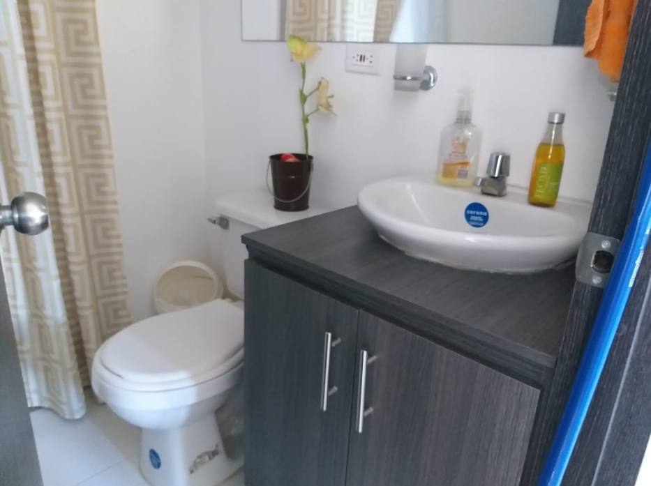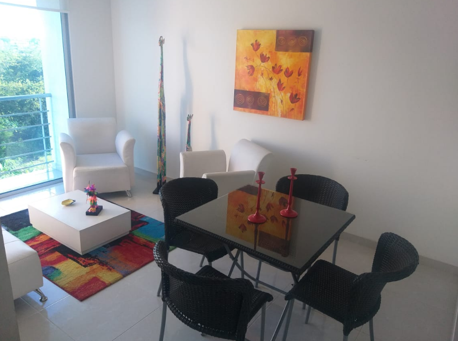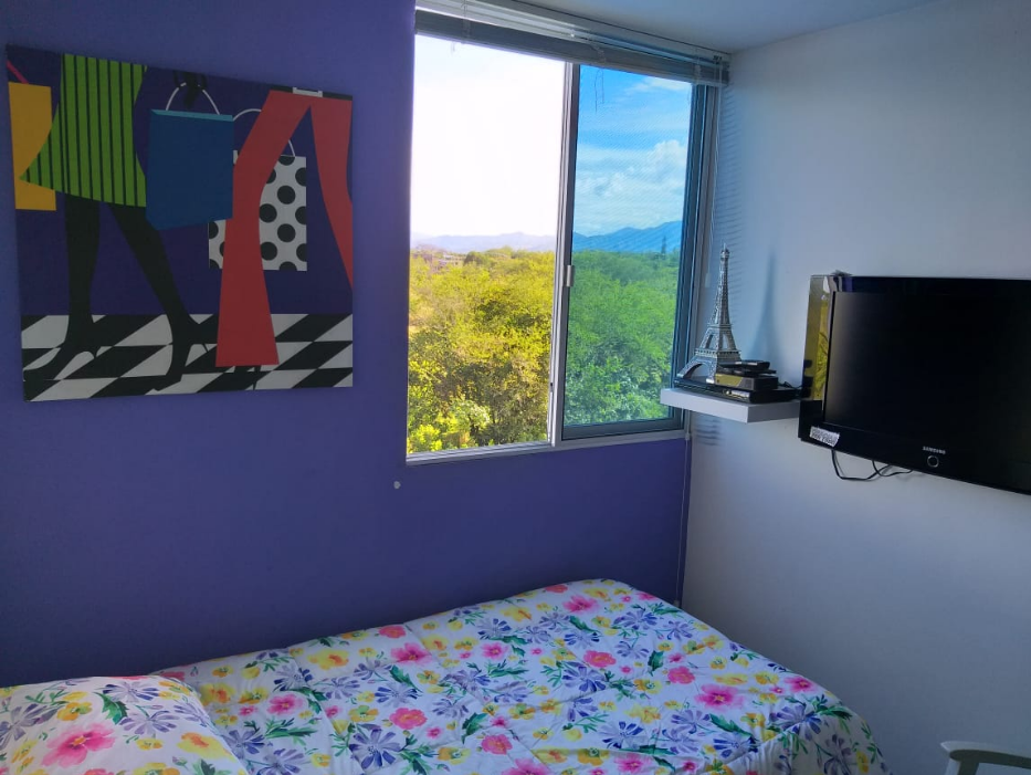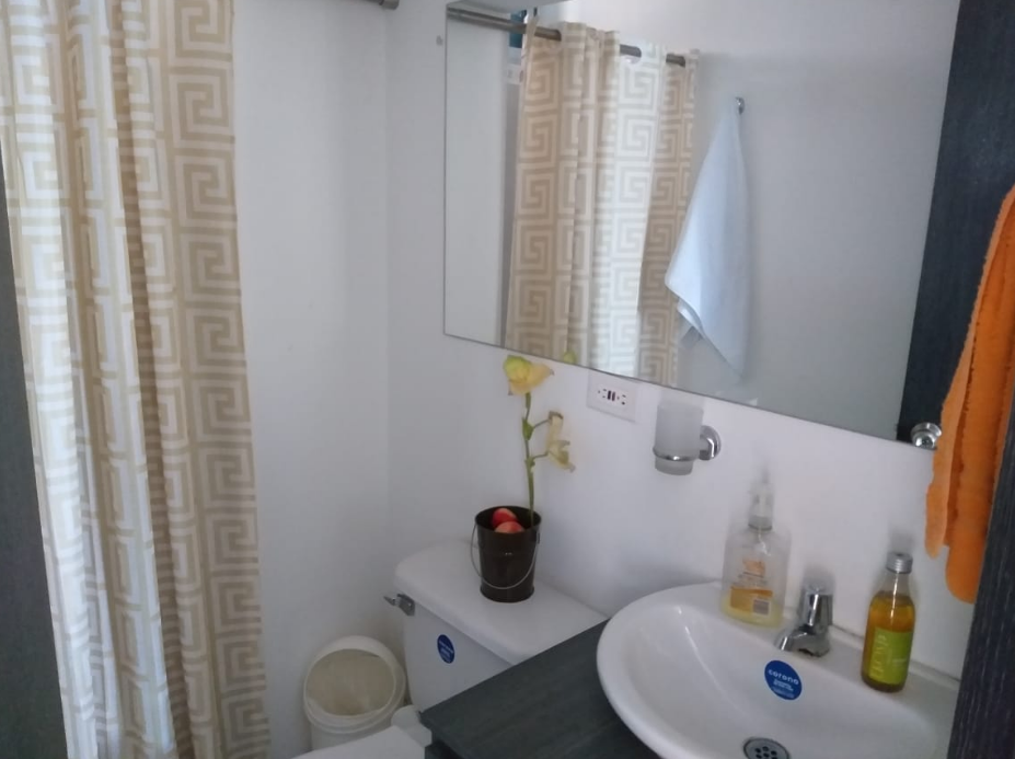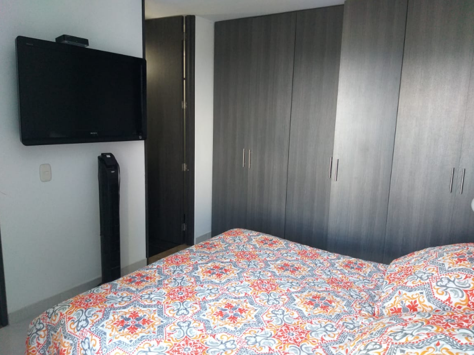 Rento hermoso apartamento amoblado por días, semanas, meses o año, en septimo piso con ascensor, cuenta con un área de 65M2 con vista panorámica, totalmente dotado, con capacidad para cuatro personas, cuenta con tres habitaciones, (la habitación principal con baño) baño de habitaciones, todas las habitaciones cuentan con closet de piso a techo, hall de alcobas, sala comedor con balcón, cocina con zona de lavandería, excelente iluminación natural, mosquetero en todas las ventanas, un parqueadero cubierto. En conjunto residencial campestre cerrado, Cuenta con Minimarket, panadería, recepción y vigilancia las 24 horas, salón social, zona de BBQ, parque infantil, parque bio saludable, piscinas con parque acuático infantil, dos ascensores. El valor de renta por día es de $250.000 para hasta cuatro personas, esta renta es mínimo por 6 noches, la renta parcial por un mes es de $ 2.500.000 incluida la administración, servicios de WI-FI, TV, gas, energía y agua para hasta 4 personas