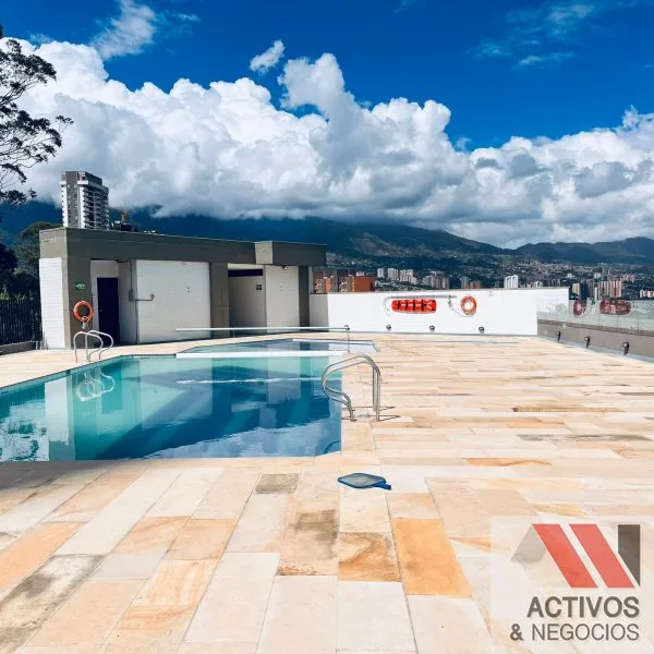 Apartamento para arriendo en Sabaneta, San Isidro, Unidad cerrada con porteria 24H, piscina, salon social, jacuzzi, sauna y parqueadero de visitantes, 82 mt2 conformado por 2 alcobas, principal con año y vestier, baño social, estudio, cocina integral abierta, estufa y horno, zona de ropas, calentador de agua a gas, red de gas, 2 parqueaderos y cuarto util