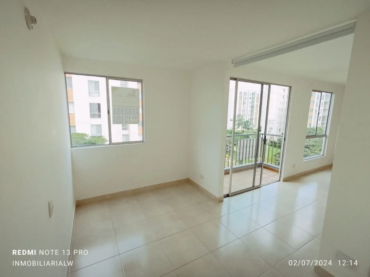 Hermoso apartamento en alquiler en Jamundí, quinto piso con ascensor, cuenta con un área de 57.06 mts, 2 habitaciones con closet, 2 baños balcón, sala de tv, sala comedor, cocina abierta con barra americana, campana extractora, cajonería en madera, zona de lavandería y calentador a gas. Canon $900.000 administración incluida, parqueadero al aire libre 295. ***