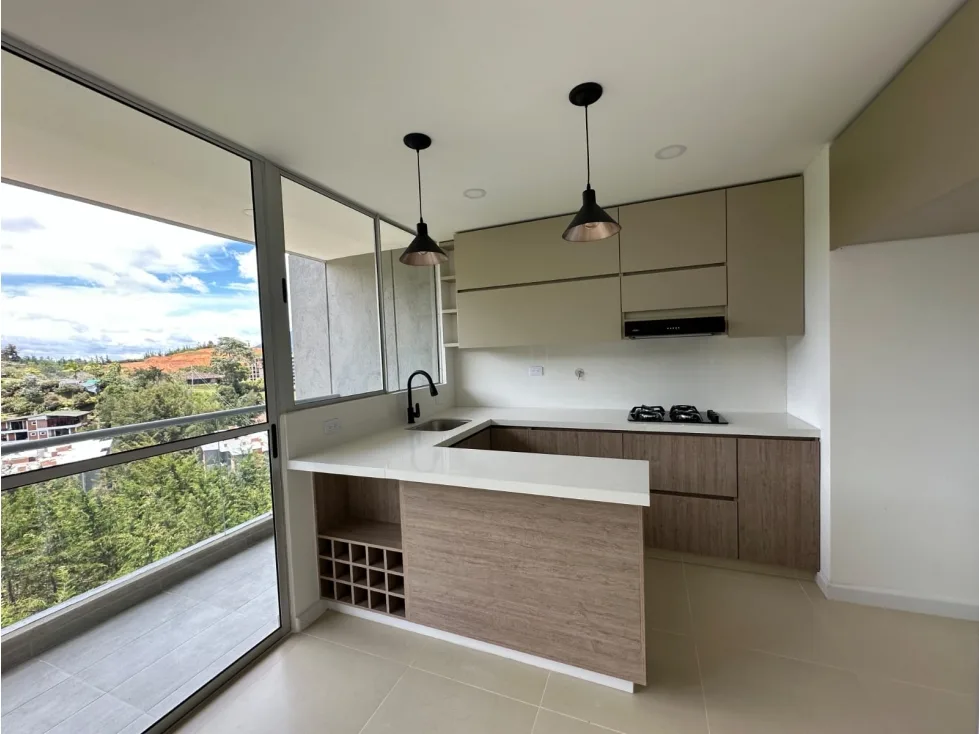 Te presentamos este hermoso apartamento ubicado en La Ceja, Antioquia, una zona tranquila y con un clima privilegiado que te hará sentir en paz y en armonía. Con una superficie de 68 metros cuadrados este inmueble es ideal para aquellos que buscan un lugar acogedor y confortable. El apartamento cuenta con 2 amplias alcobas, perfectas para descansar y relajarte después de un largo día de trabajo. Además, posee 2 baños, uno de ellos en habitación principal, lo que te garantiza privacidad y comodidad. El diseño de la cocina estilo americano con una moderna barra, se integra perfectamente con el área social, brindando un espacio amplio y cómodo para compartir en familia o con amigos.