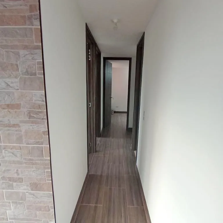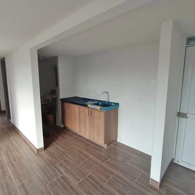 Hermoso apartamento de aproximadamente 52 m2. Cuenta con sala comedor, balcón, cocina semi integral, 3 habitaciones con su respectivo closet, un baño social y uno privado, estudio y zona de ropas. Dispone de zonas comunes como gimnasio, salón social, zonas verdes, parque infantil, parqueadero comunal y para visitantes. Ubicado a 20 minutos de la Plazoleta de Madrid, Centro Comercial Casablanca, supermercados y a sector comercial. Cómodo y gran acceso a transporte público y vías como Calle 13 y Calle 80. 679-59450