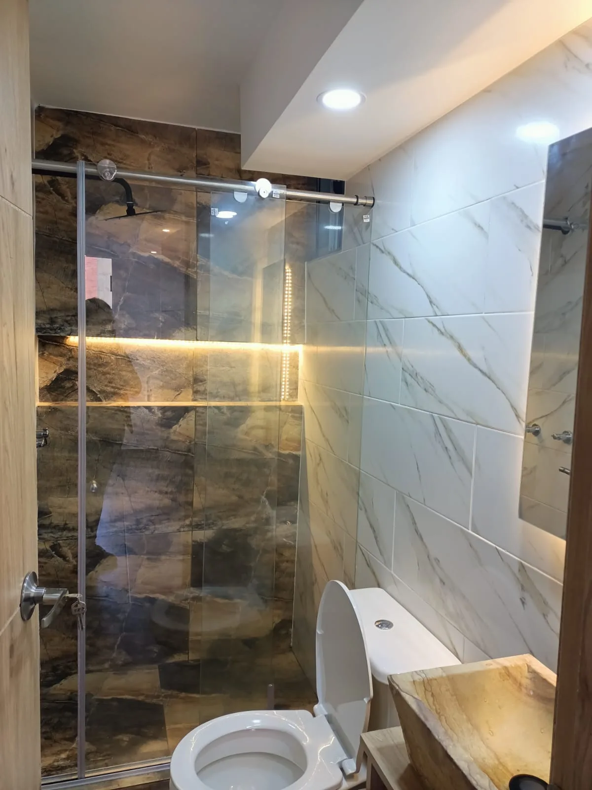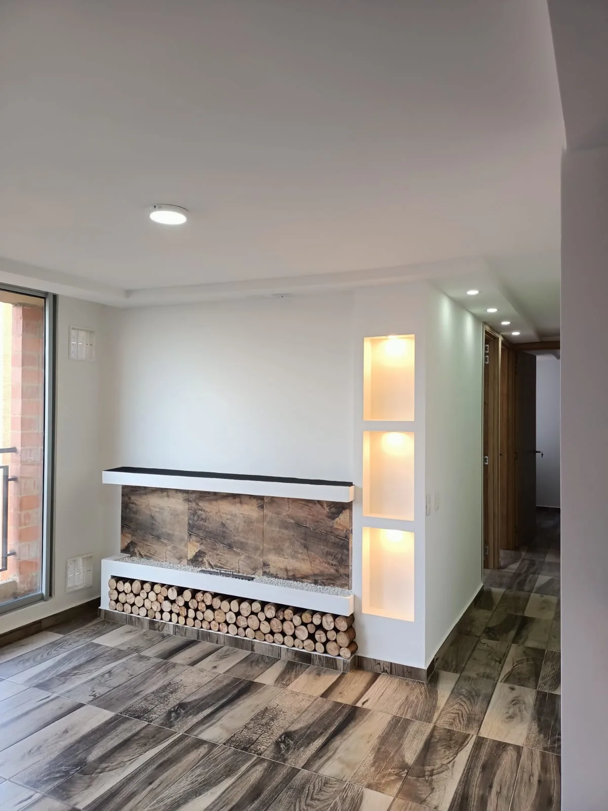 Apto para estrenar 64mtrs 3 Habitaciones 2 baños, completamente terminado acabados de lujo ambientes cálidos y fríos en todas las habitaciones y espacios comunes sala con chimenea piedra mural, baños con nichos luces calidas lavamanos en piedra cocina granito alta calidad barra americana cajoneras cocina integral y minibar cierre suave Pisos ceramicos, walking clóset en alcoba principal. Zafiro - La prosperidad