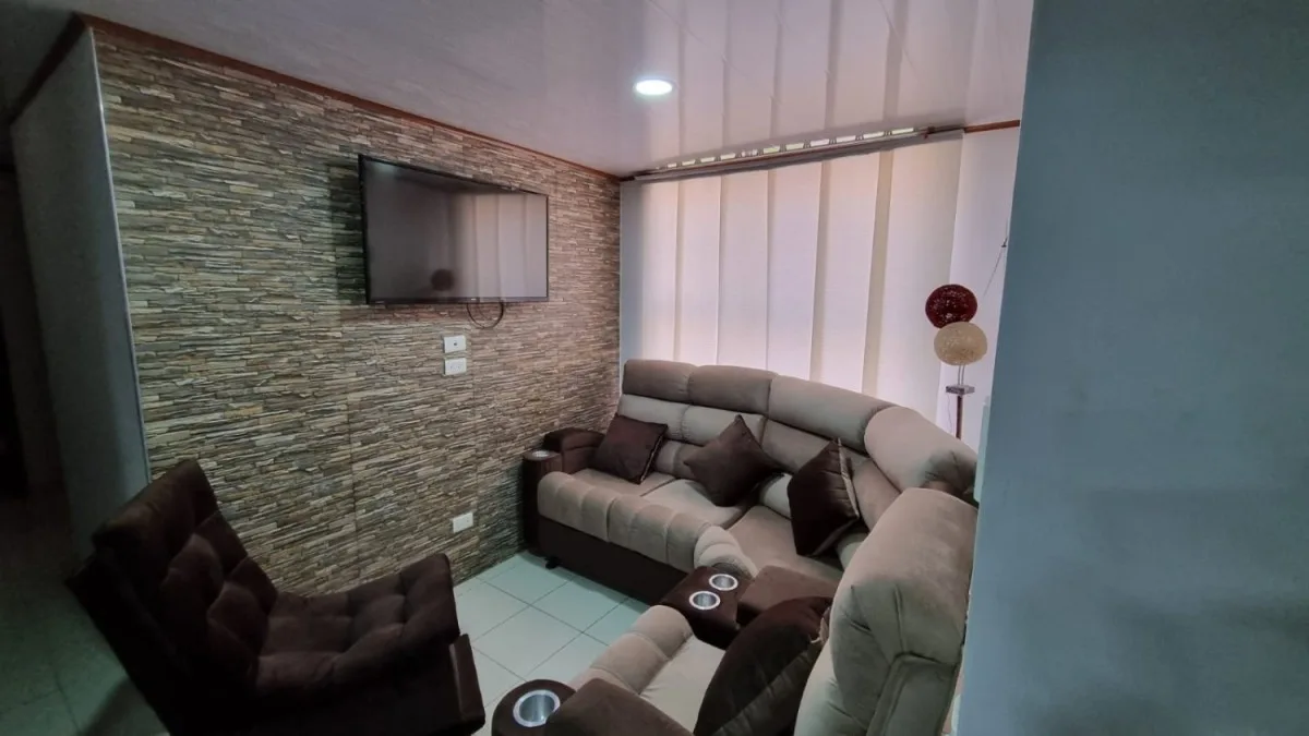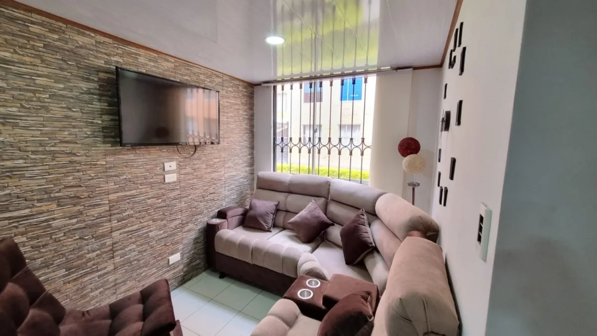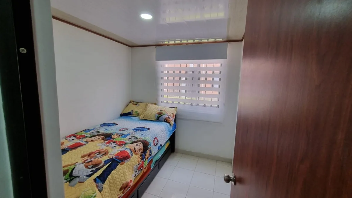 Excelente apartamento de setenta y dos metros nuevo para estrenar, ubicado en la super manzana diez en Madrid , en un primer piso, consta de tres habitaciones, dos baños con división en vidrio, sala comedor independiente cocina integral a gas, zona de ropas independiente cubierta con domo corredizo, y también tiene un balcón cubierto en la habitación principal que se puede usar como depósito, acabados de lujo. 213-6006