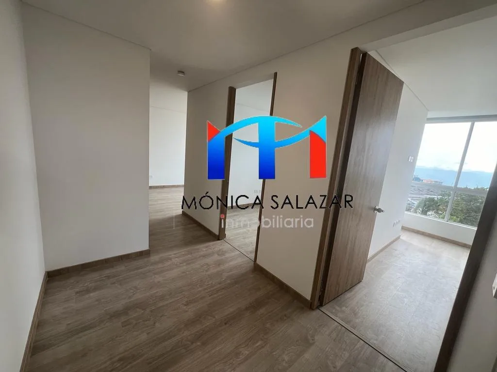 Espectacular apartamento con vista panorámica, cuenta con 3 habitaciones, cada una con closet, sala comedor con balcón y cocina integral, la zona de ropas es un cuarto independiente, baño social y baño en la alcoba principal.