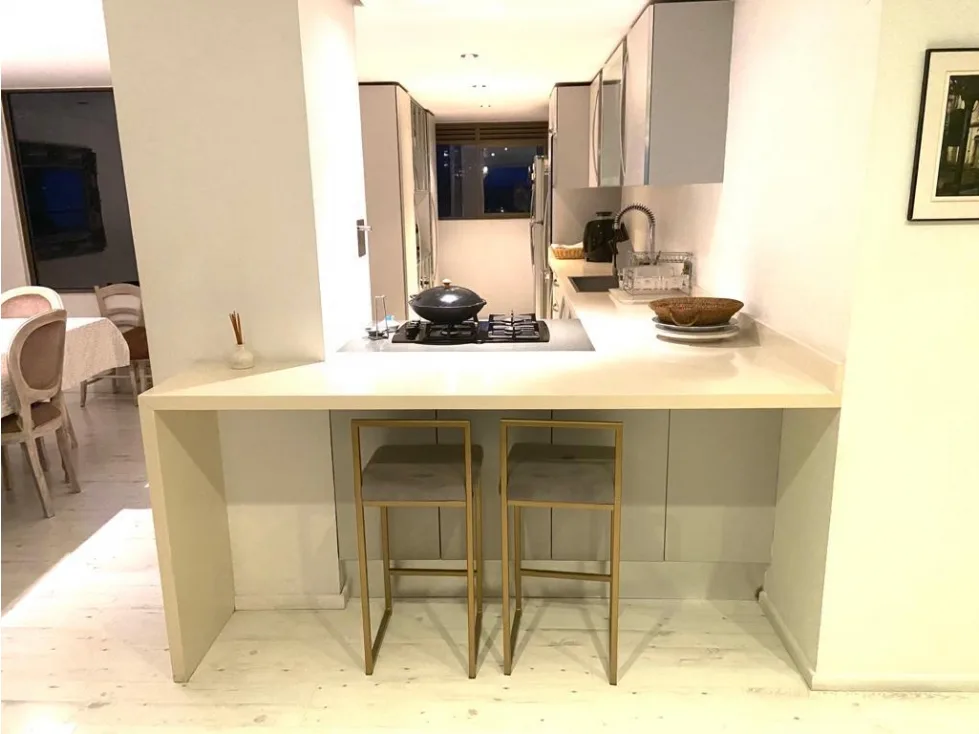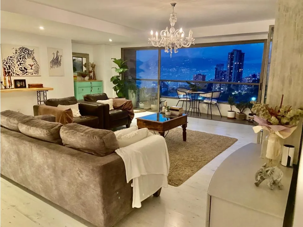 Vendo apto remodelado piso alto con super vista definida, tiene 215 M distribuiodos en 2 habitaciones ambas con baño y vestier, sala y comedor independientes, cocina abierta, habitación de servicio con baño, balcón, 2 parqueaderos paralelos y útil.