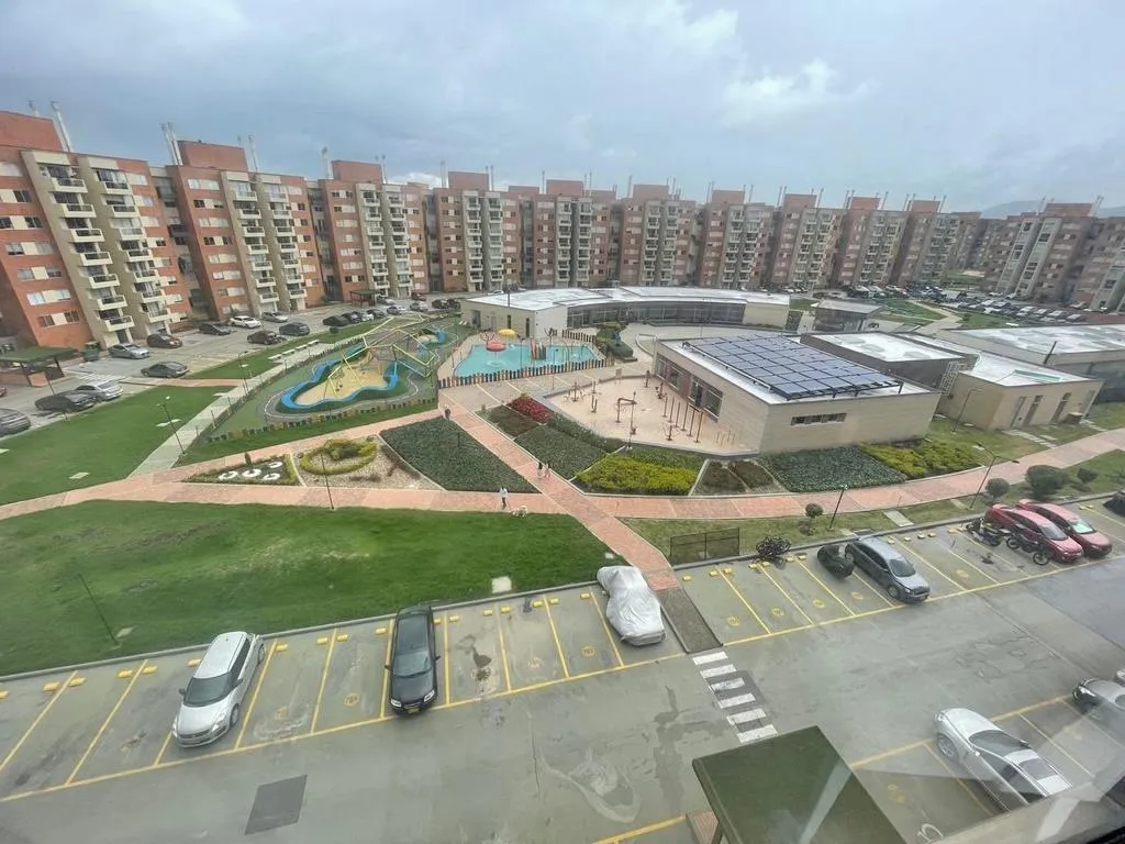 Hermoso e iluminado apartamento de aproximadamente 65 mt2, cuenta con sala comedor, 3 habitaciones con su respectivo closet, cocina totalmente integral, 2 baños con divisiones en vidrio, zona de ropas, parqueadero privado cubierto y depósito privado. Pueden hacer uso de zonas verdes, piscina, gimnasio, salón social, zona BBQ, teatrín y juegos infantiles club house. Ubicado cerca al centro principal de Mosquera, a 20 minutos del Centro comercial Ecoplaza, Homecenter, posee gran facilidad de acceso a transporte público, cómodas vías de acceso para Bogotá como calle 13 y calle 80. 679-61954