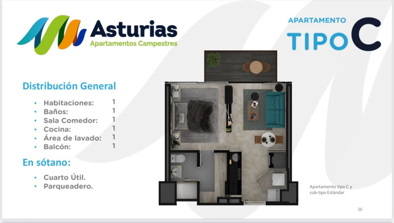 Este Espectacular Y acogedor Apartaestudio en Asturias Apartamentos Campestres, Esta ubicado en Cerritos cuenta con iluminación natural y una vista panorámica, complementado con espacios como balcón además de: