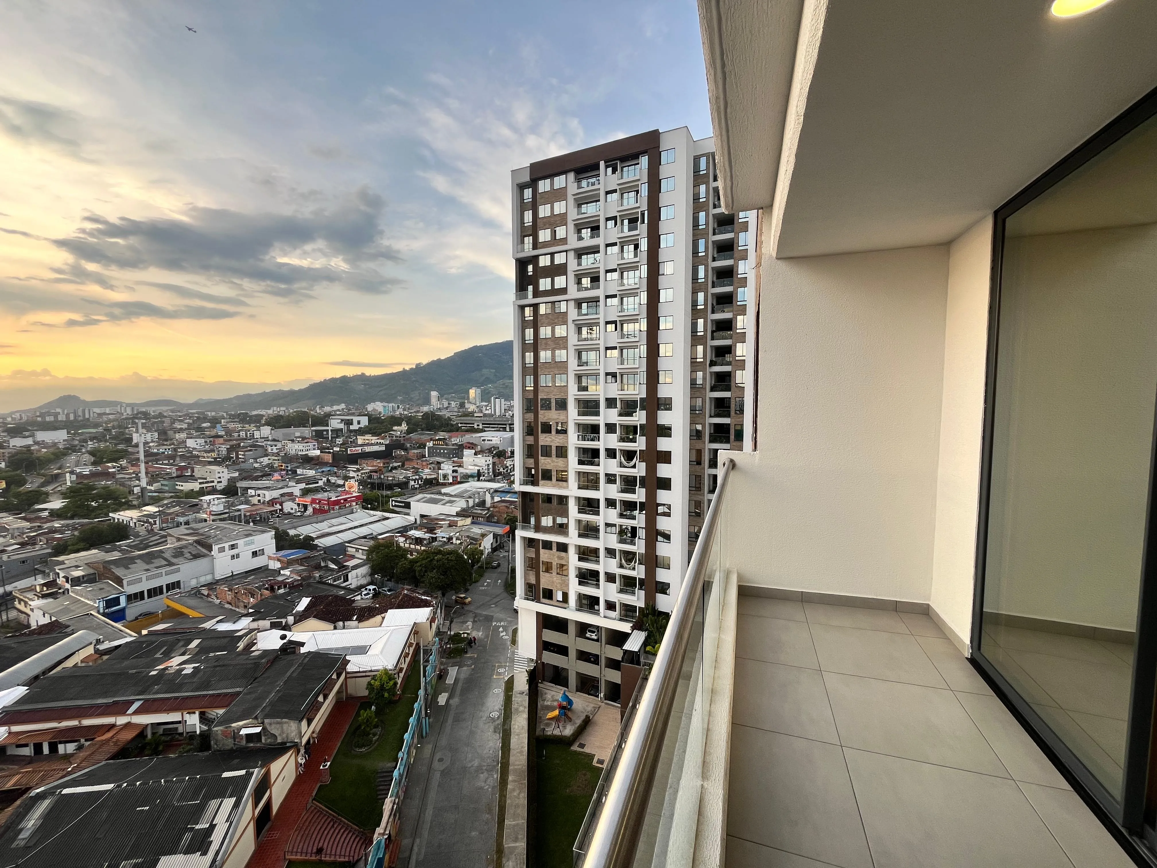 Apartamento para estrenar en renta en el sector de Pinares, este inmueble cuenta con una vista linda a la ciudad de Pereira, mide 90 metros cuadrados, cuenta con sala comedor, cocina integral, zona de ropas, baño social, balcón, dos alcobas auxiliares con baño social y la alcoba principal con baño privado y vestier, tiene parqueadero cubierto, el edificio cuenta con zona social como piscina de adultos, niños, zona de juegos, salón social, gimnasio, adicional estas cerca a centros comerciales, restaurantes, clínicas, entre otros, anímate, valor de renta $4.000.000