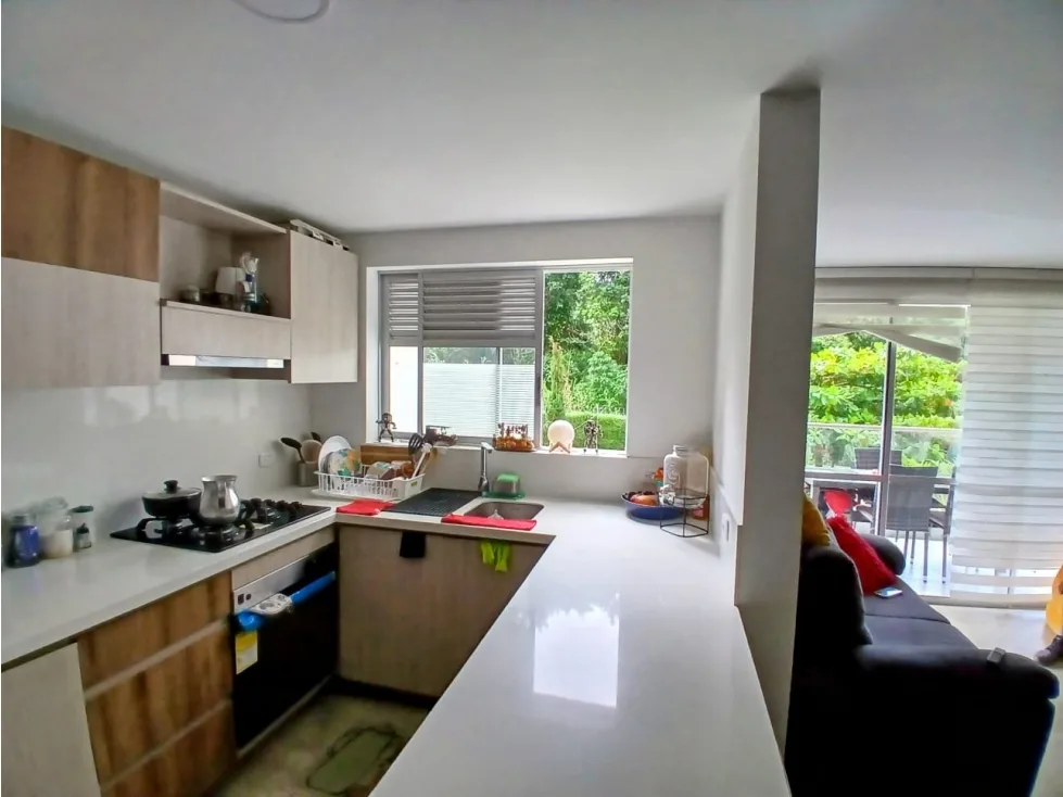 vive con estilo en este acogedor apartamento en arrendamiento, con 104 mts2 construidos, cuenta con 3 habitaciones, closets, 2 baños, cocina integral, barra estilo americano, gas natural, calentador, sala comedor, balcón, zona de ropas, pisos en cerámica y parqueadero cubierto. Admón vigente incluida. Sus alrededores cuentan con zona BBQ, piscina, gimnasio, recepción, ascensor, portería con vigilancia 247.