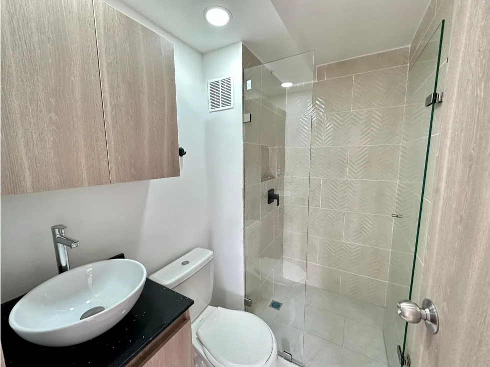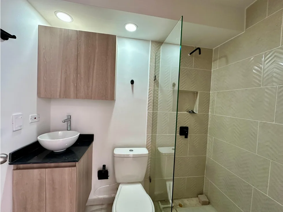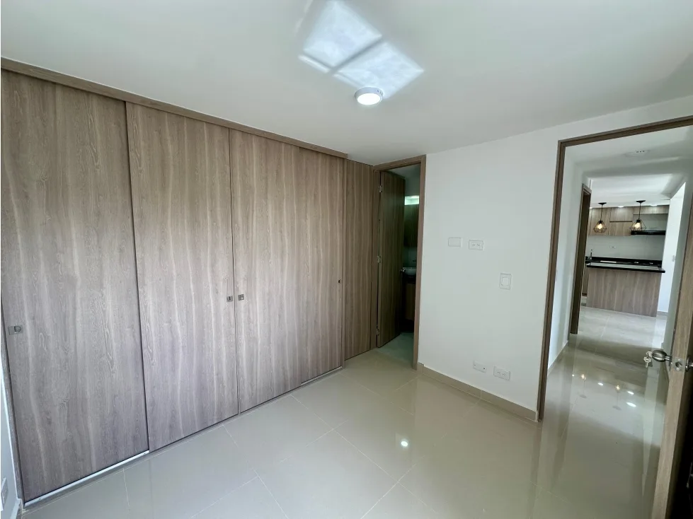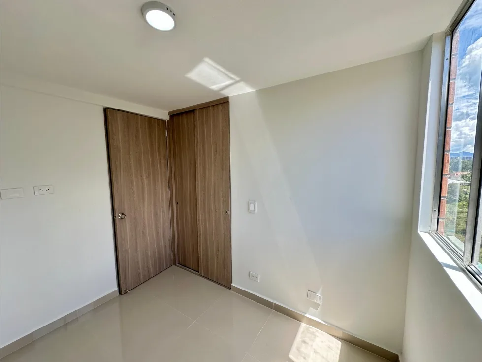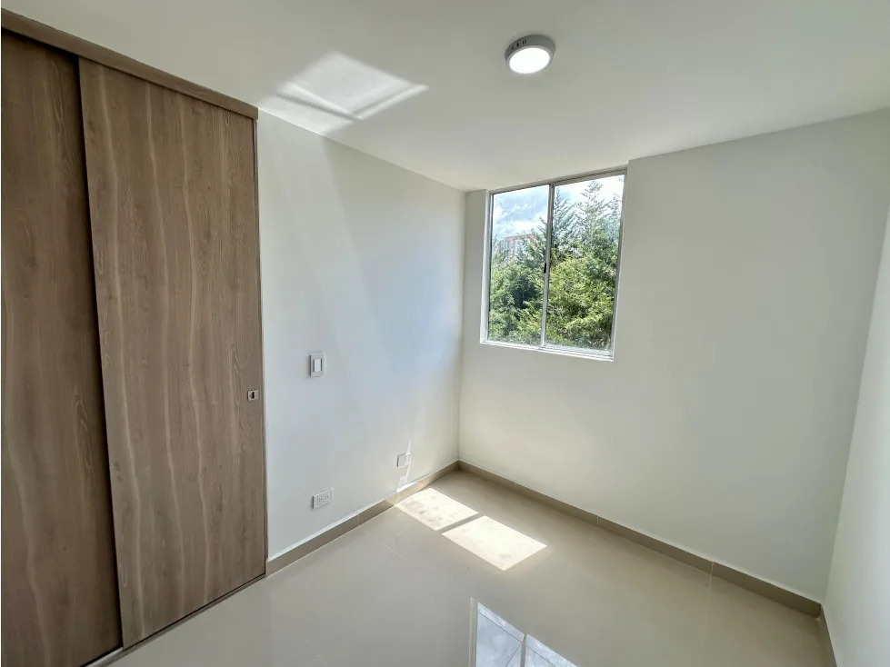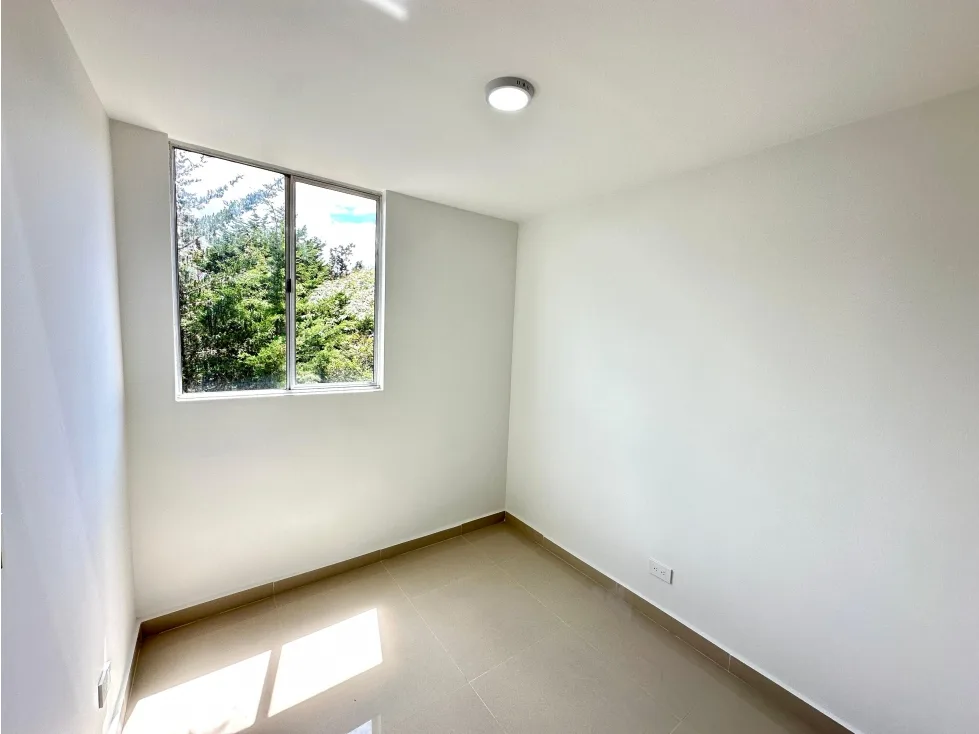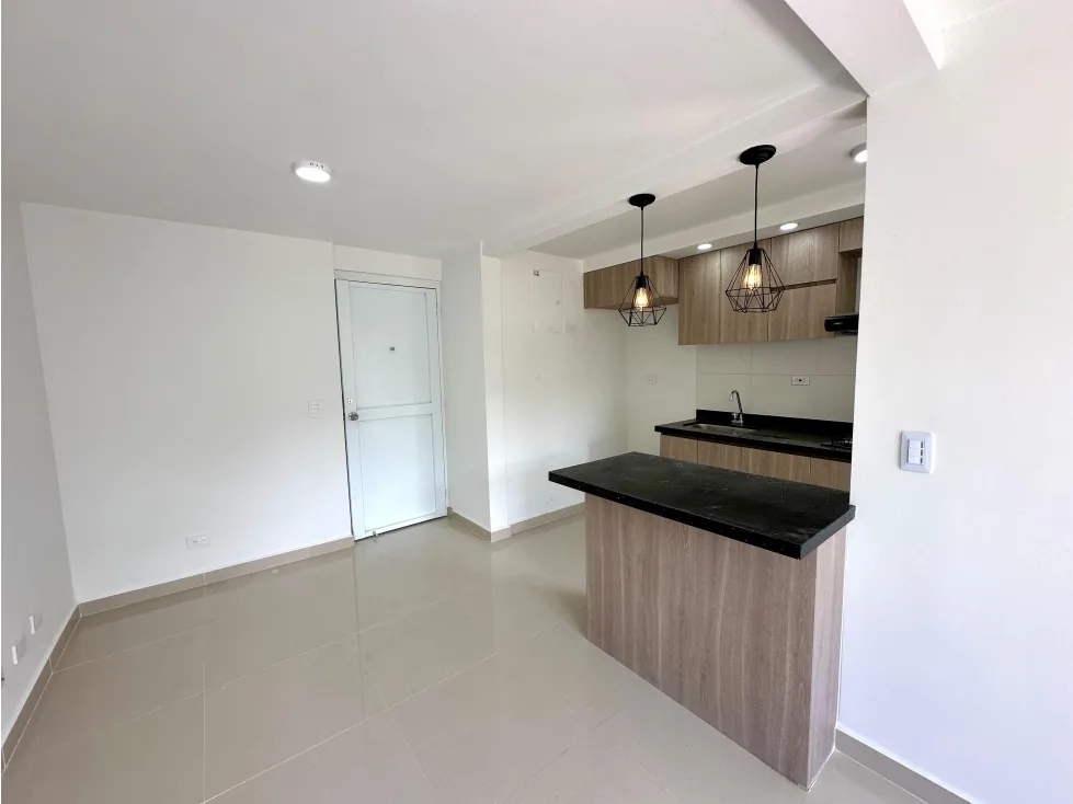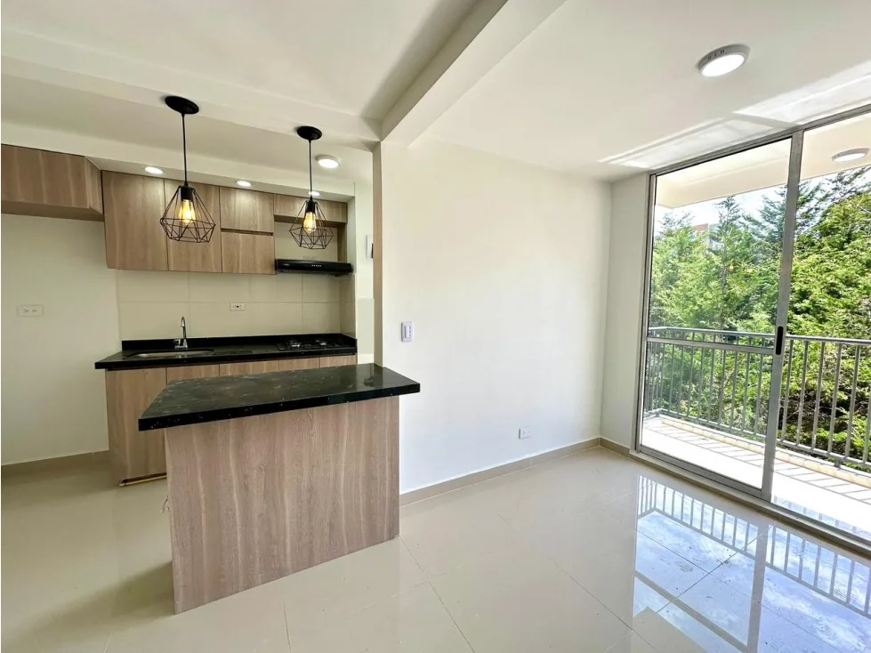 Moderno apartamento de 54 m2 ubicado en el sector el Porvenir en Rionegro cuenta con una amplia zona social integrada a una cocina abierta con barra americana, zona de ropas y un balcón con vista panorámica a un paisaje campestre, 1 baño social, 2 alcobas, una de ellas con baño y doble clóset , parqueaderos comunes.