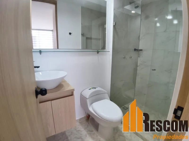 Apartamento con 46 mts2, estrato 4, piso 8, cocina integral, sala comedor, 2 alcobas, principal con baño, 2 closets, baño social, zona de ropas, balcón, parqueadero cubierto, red de gas y calentador.