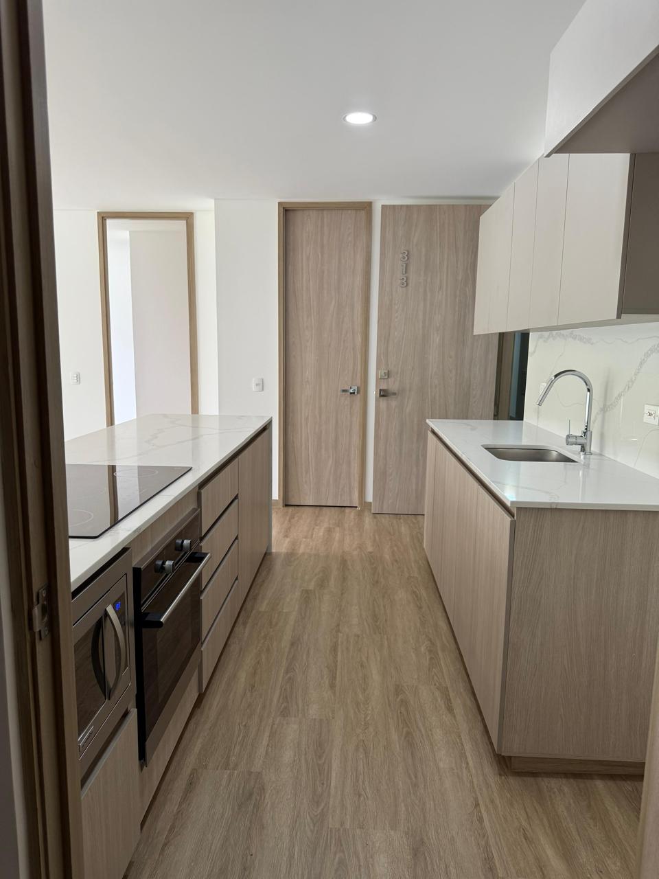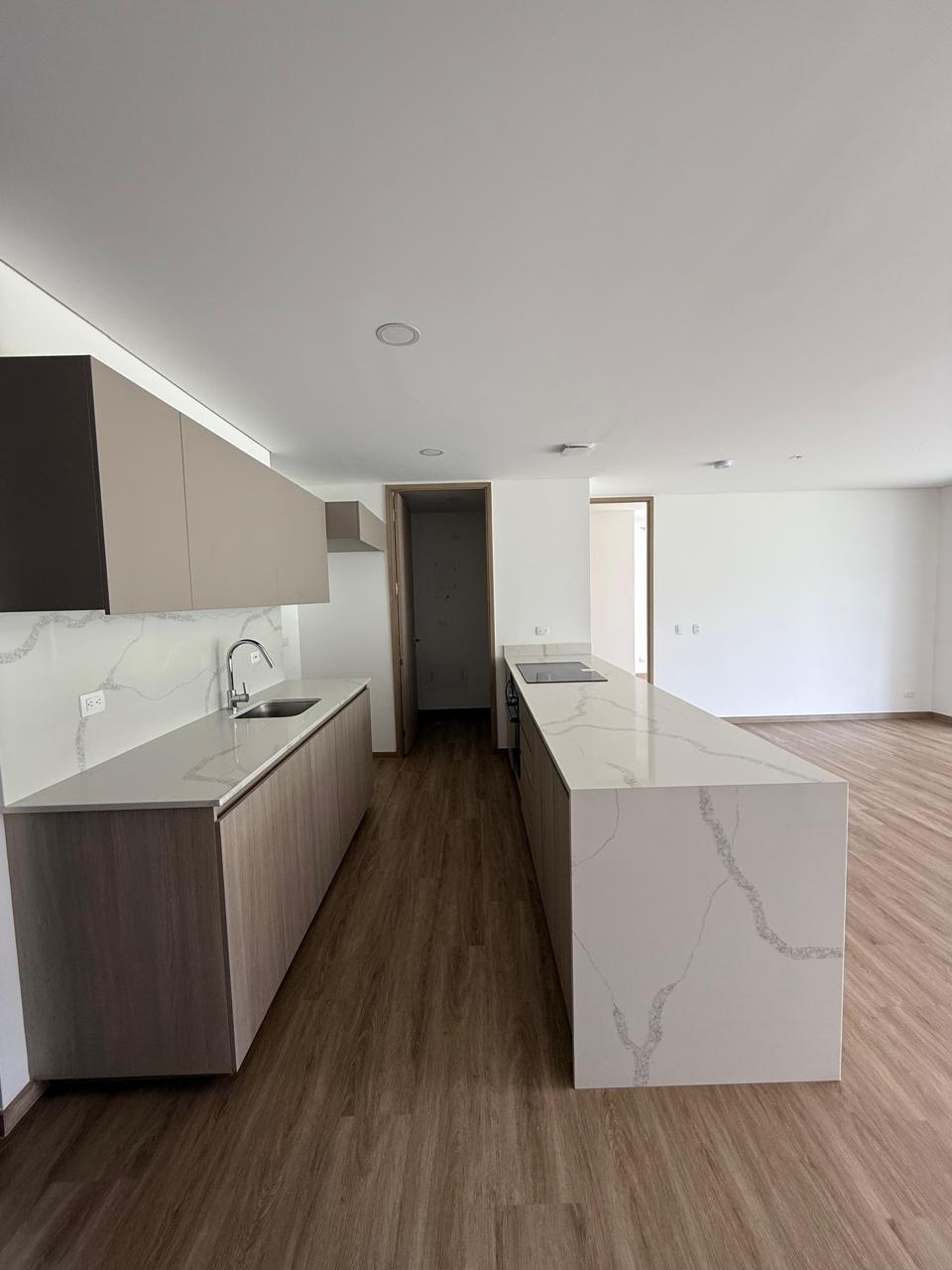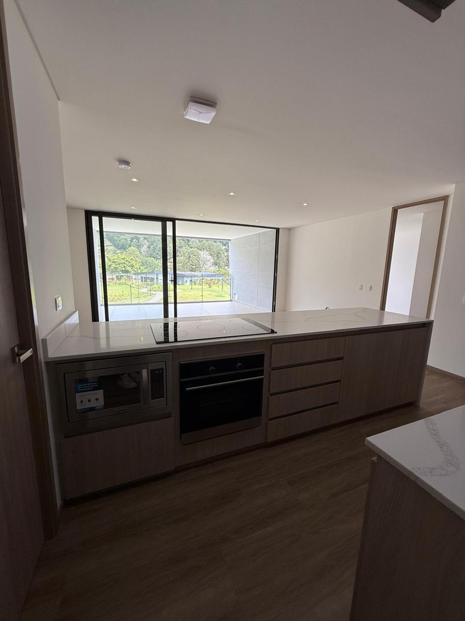 Se arrienda Apartamento en Rionegro con un diseño moderno y funcional, ideal para quienes buscan estrenar un espacio amplio en un entorno natural y tranquilo. Esta propiedad ofrece una generosa área de 110 m² distribuidos de manera estratégica para brindar confort y practicidad en cada rincón. Al ingresar, te recibe una cocina integral con un amplio mesón, gabinetes superiores e inferiores, y una isla central equipada con estufa digital, horno empotrado y espacio adicional para microondas. La cocina se conecta directamente con la sala y el comedor, creando una zona social continua que finaliza en un amplio balcón con vista panorámica hacia la montaña, ideal para disfrutar del paisaje verde de Rionegro.