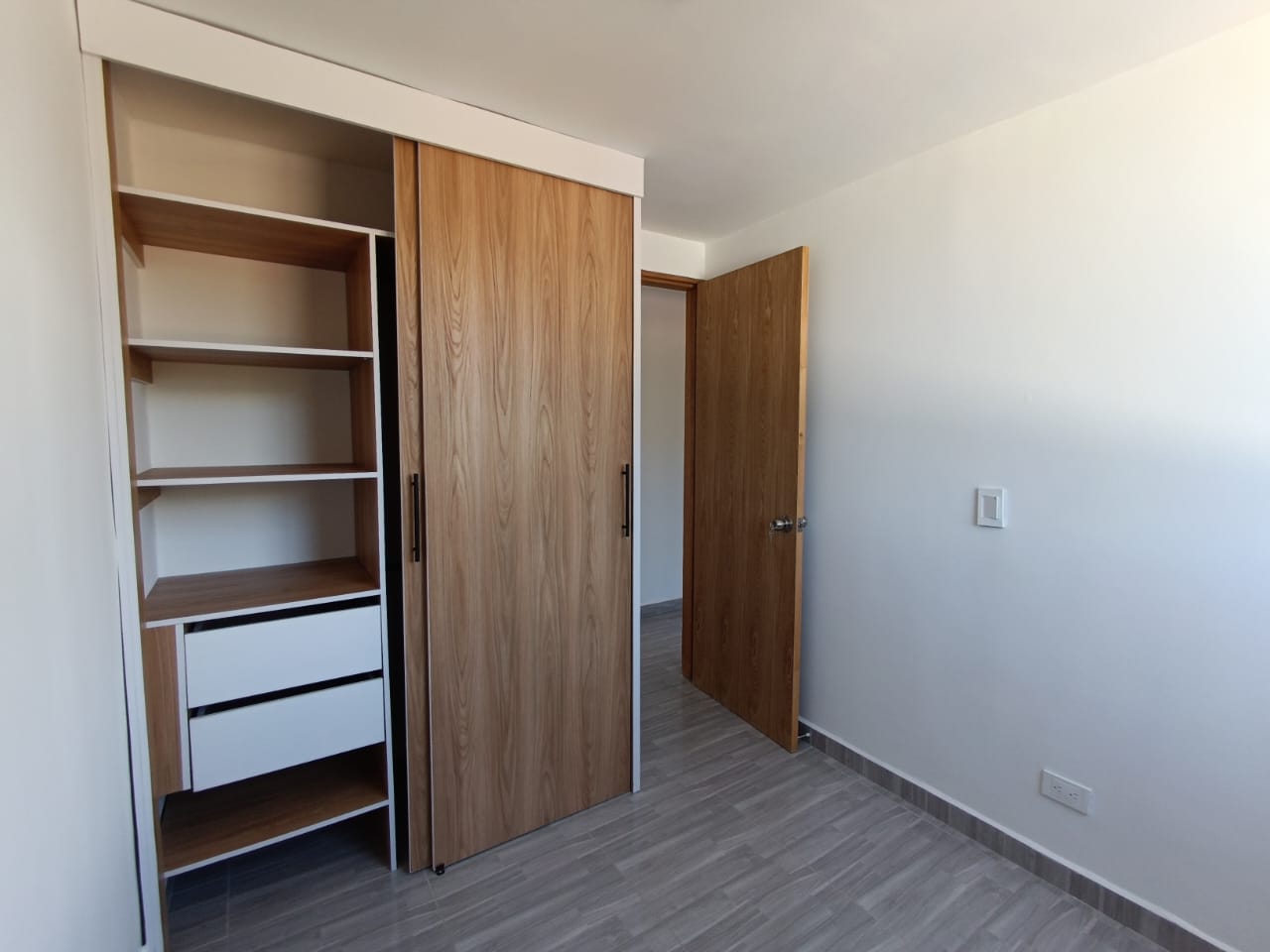 Te presentamos un moderno y funcional apartamento para arriendo en la zona de Boral, Rionegro, Antioquia, ideal para quienes buscan un espacio confortable y bien ubicado. Con 53 metros cuadrados, esta propiedad ofrece un diseño que aprovecha la luz natural gracias a sus ventanas amplias y un balcón con vista exterior que brinda un ambiente fresco y agradable. El apartamento cuenta con tres alcobas, cada una con piso en cerámica que imita madera para dar un acabado moderno y acogedor. La alcoba principal incluye un walk-in closet amplio con excelente sistema de organización en madera. Las otras dos alcobas también disponen de closets empotrados que optimizan el espacio. La cocina está equipada con muebles en madera, encimeras en granito negro y un moderno extractor, además de un horno empotrado y estufa a gas que garantizan funcionalidad y estilo. Un detalle muy práctico es el lavadero independiente ubicado al final de la cocina, con espacio para la lavadora y un calentador de paso instalado, facilitando las tareas domésticas. El área social destaca por su amplitud y conexión directa con el balcón, lo que crea un ambiente luminoso y ventilado perfecto para sala-comedor. El baño tiene acabados en cerámica clara estilo mármol, ducha con puerta de vidrio templado y accesorios modernos, aportando confort y elegancia. El apartamento se encuentra en un entorno tranquilo con buena accesibilidad, perfecto para vivir cómodamente o para inversión. Su distribución inteligente y las terminaciones modernas hacen de este inmueble una excelente oportunidad para quienes buscan calidad y funcionalidad. Características destacadas: Área: 53 m² 3 alcobas con closets empotrados y walk-in closet en alcoba principal 1 baño completo con acabados modernos y ducha en vidrio templado Cocina equipada con muebles en madera, encimera en granito negro, estufa a gas y horno empotrado Lavadero independiente con espacio para lavadora y calentador de paso Balcón con vista exterior y buena iluminación natural en sala-comedor Pisos en cerámica efecto madera que aportan calidez y modernidad Ubicación estratégica en Boral, Rionegro, Antioquia, con fácil acceso y entorno tranquilo No pierdas la oportunidad de vivir en un apartamento que combina funcionalidad, diseño y ubicación privilegiada. Contáctanos para más información y agenda tu visita, ¡tu nuevo hogar en Boral te está esperando!