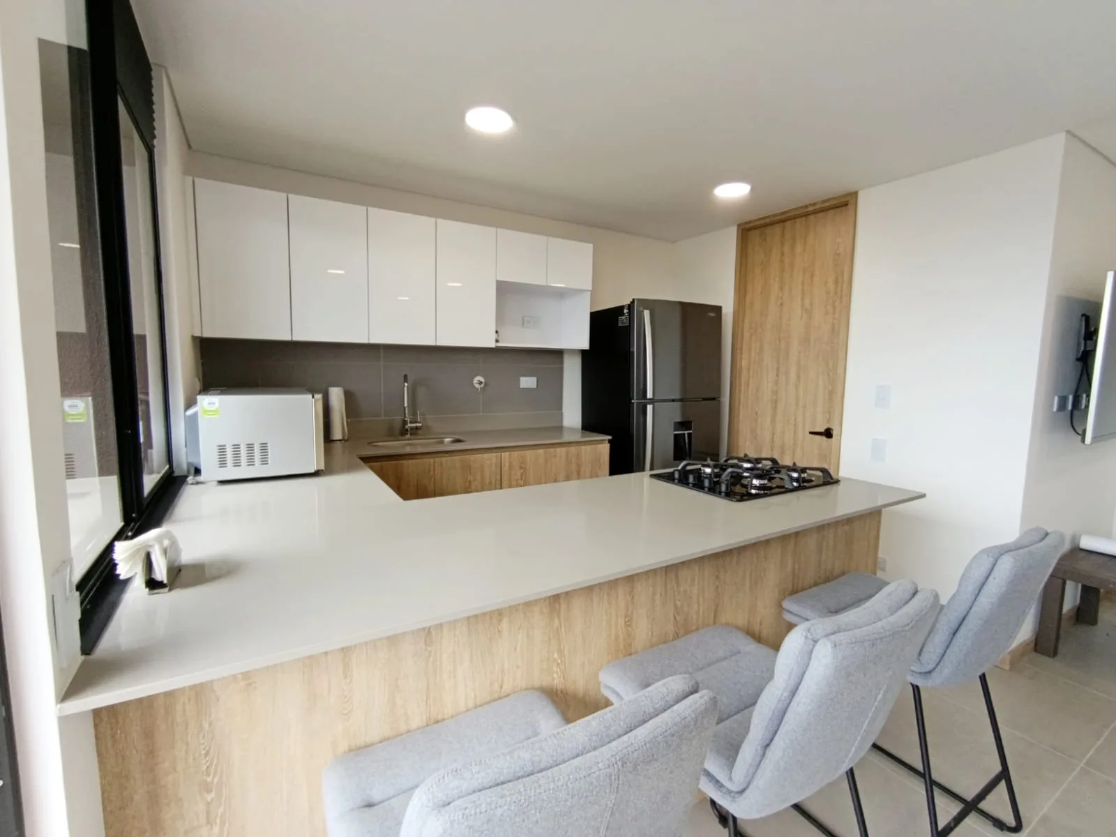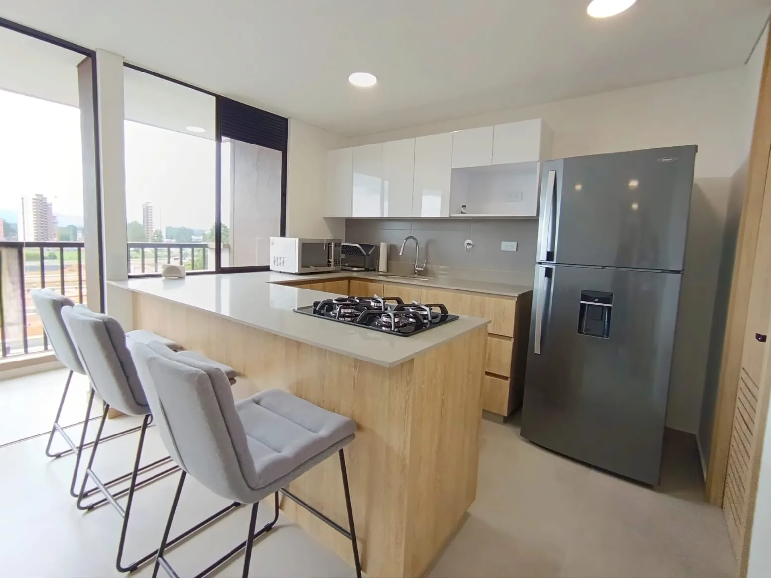 - Características Interiores: Balcón, Barra estilo americano, Baño Auxiliar, Baño Independiente, Calentador, Closet, Cocina Integral, Instalación de gas, Piso en Baldosa / Mármol, Vista panorámica