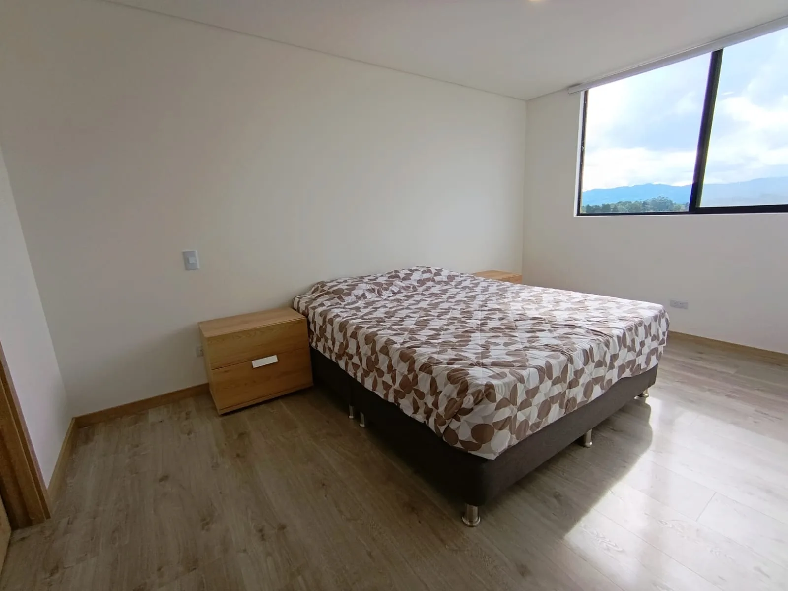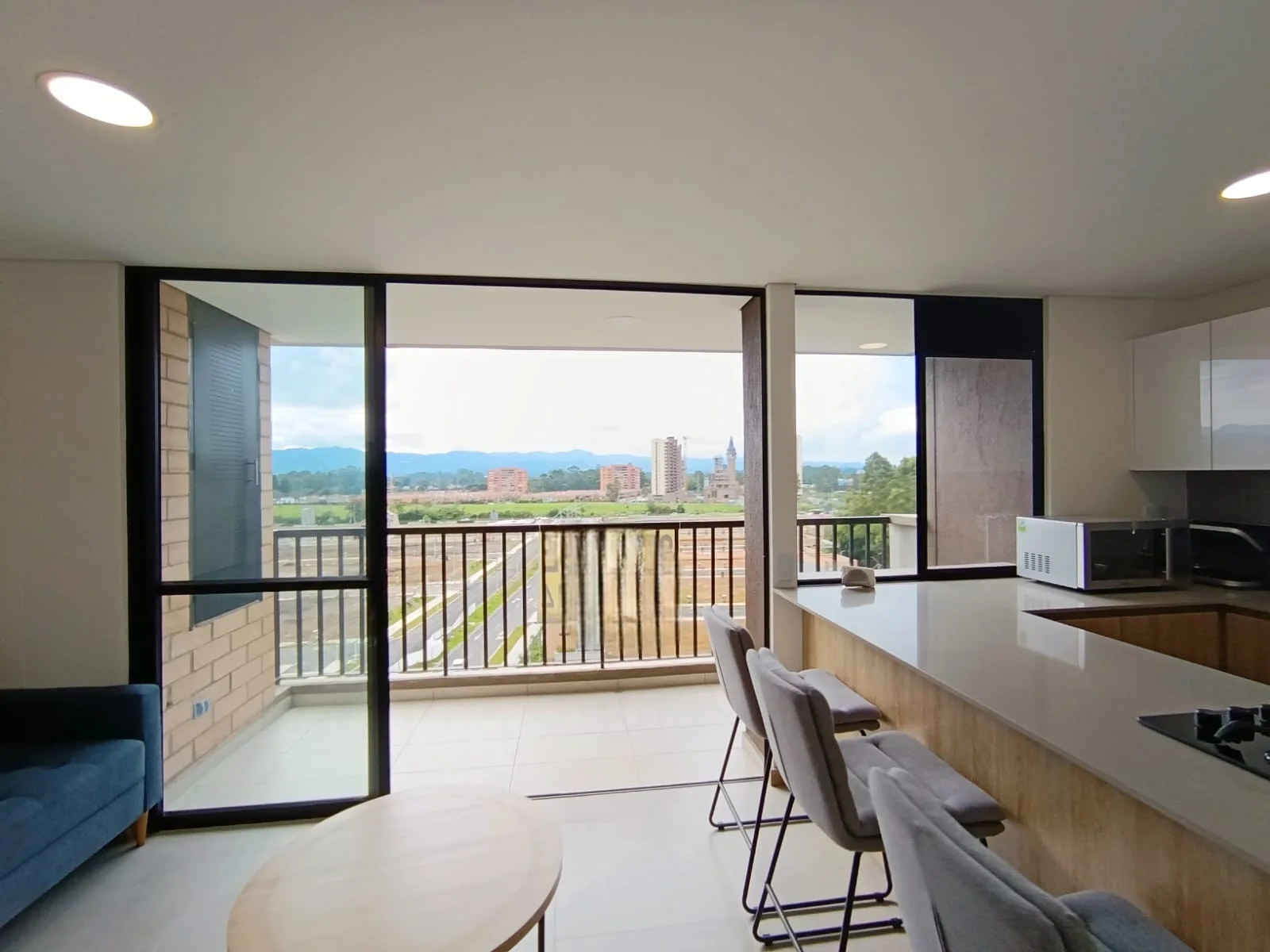 Apartamento de 65 m2 ubicado en el sector de San Antonio de Pereira en Rionegro a pocas cuadras del parque principal, cuenta con una amplia zona social integrada a una cocina abierta con barra americana y un amplio balcón con vista panorámica, 1 baño social, 2 alcobas, la principal con vestier y baño, zona de ropas y 1 parqueadero.