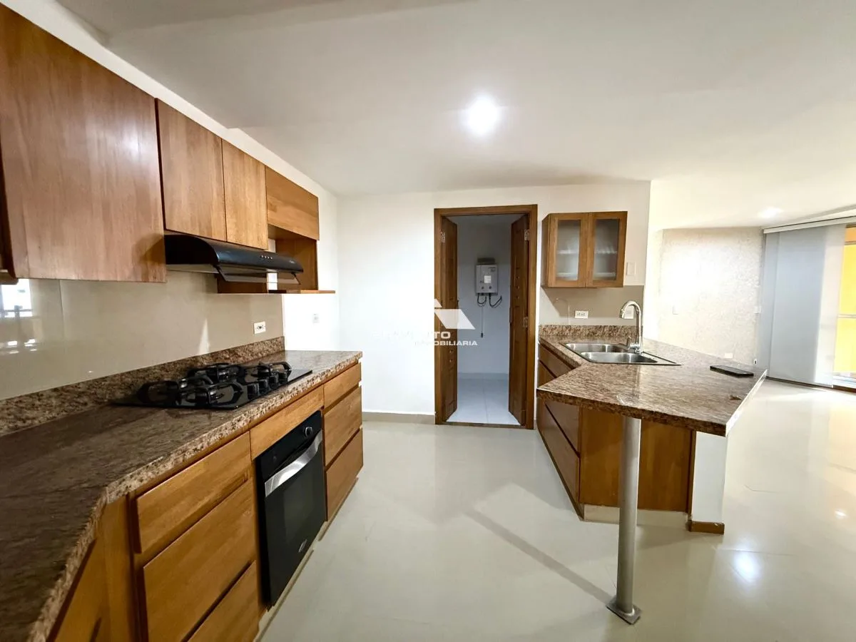 (COD 38) Arriendo de apartamento a solo 5 minutos del parque de Sabaneta. Cuenta con cocina integral, zona de ropas independiente, sala comedor, 2 balcones, 3 habitaciones, 2 baños completos, 2 parqueaderos privados y 2 cuartos útiles. La urbanización ofrece piscina, gimnasio, salón social, zonas verdes, juegos infantiles, zona de mascotas y portería 24/7.