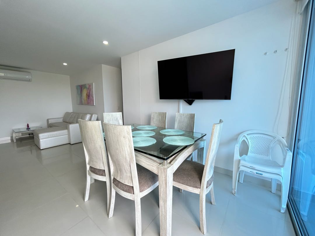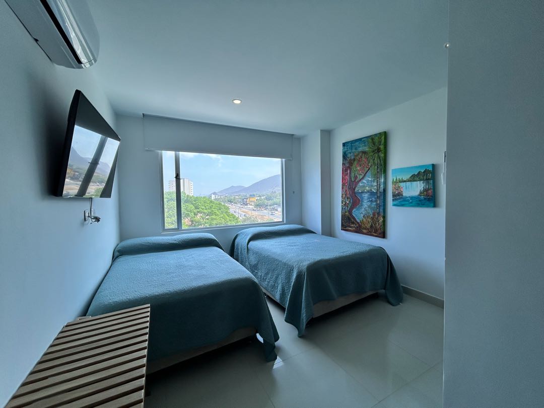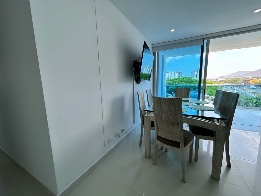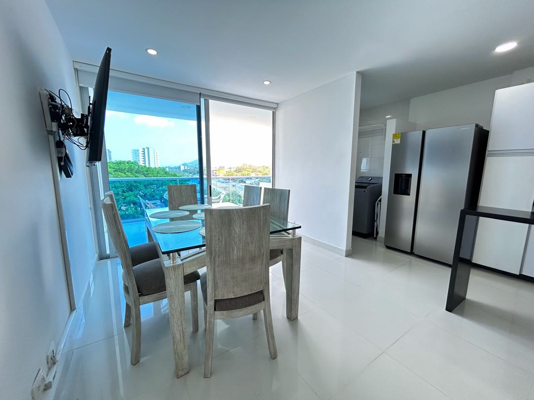 En la hermosa ciudad de Santa Marta, en el departamento de Magdalena, se encuentra este apartamento en venta con un área total de 129.16 metros cuadrados, perfecto para aquellos que buscan un estilo de vida tranquilo y cerca de la naturaleza. Construido con los mejores materiales y acabados de alta calidad, este apartamento cuenta con 3 amplias alcobas y 3 baños completos, dos de ellos dentro de las alcobas. En el área social, se encuentra una moderna y funcional barra estilo americano que conecta la cocina totalmente equipada y amoblada, con la sala de estar y el comedor, creando un espacio ideal para compartir en familia y con amigos. También dispone de una zona de lavandería para mayor practicidad en las tareas del hogar. El apartamento cuenta con un sistema con 4 aires acondicionados para mantener una temperatura agradable en todo momento, así como dos vistas panorámicas que te permitirá disfrutar de los hermosos paisajes que ofrece Santa Marta. En el exterior, la accesibilidad no será un problema gracias a su acceso pavimentado y ascensor. Además, se encuentra cerca de centros comerciales como lo es Zazue, zonas urbanas y a pocos pasos del transporte público, lo que te permitirá desplazarte por la ciudad de manera ágil y cómoda. La seguridad es un factor importante y en este apartamento no tendrás que preocuparte, ya que cuenta con circuito cerrado de televisión, portería y vigilancia las 24 horas del día. También podrás disfrutar de zonas verdes, un barbacoa para reuniones al aire libre y un club social para compartir con tus vecinos y amigos. Si te gusta vivir en un lugar tranquilo y seguro, este apartamento en una urbanización cerrada es perfecto para ti. Además, cuenta con un garaje privado para tu vehículo y parqueadero para tus visitas. ¡No te preocupes por los cortes de luz, ya que dispone de planta eléctrica para emergencias! No dejes pasar esta oportunidad de tener la vida que siempre has deseado en este hermoso apartamento en Santa Marta. ¡Contáctanos ahora para más información y agendar una visita! ¡Haz de este lugar tu nuevo hogar!