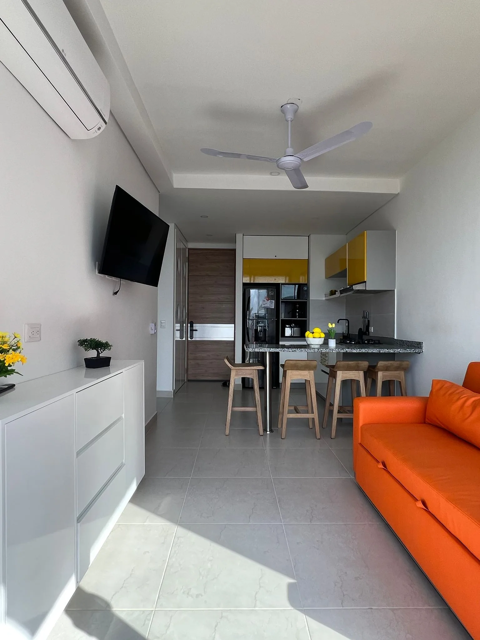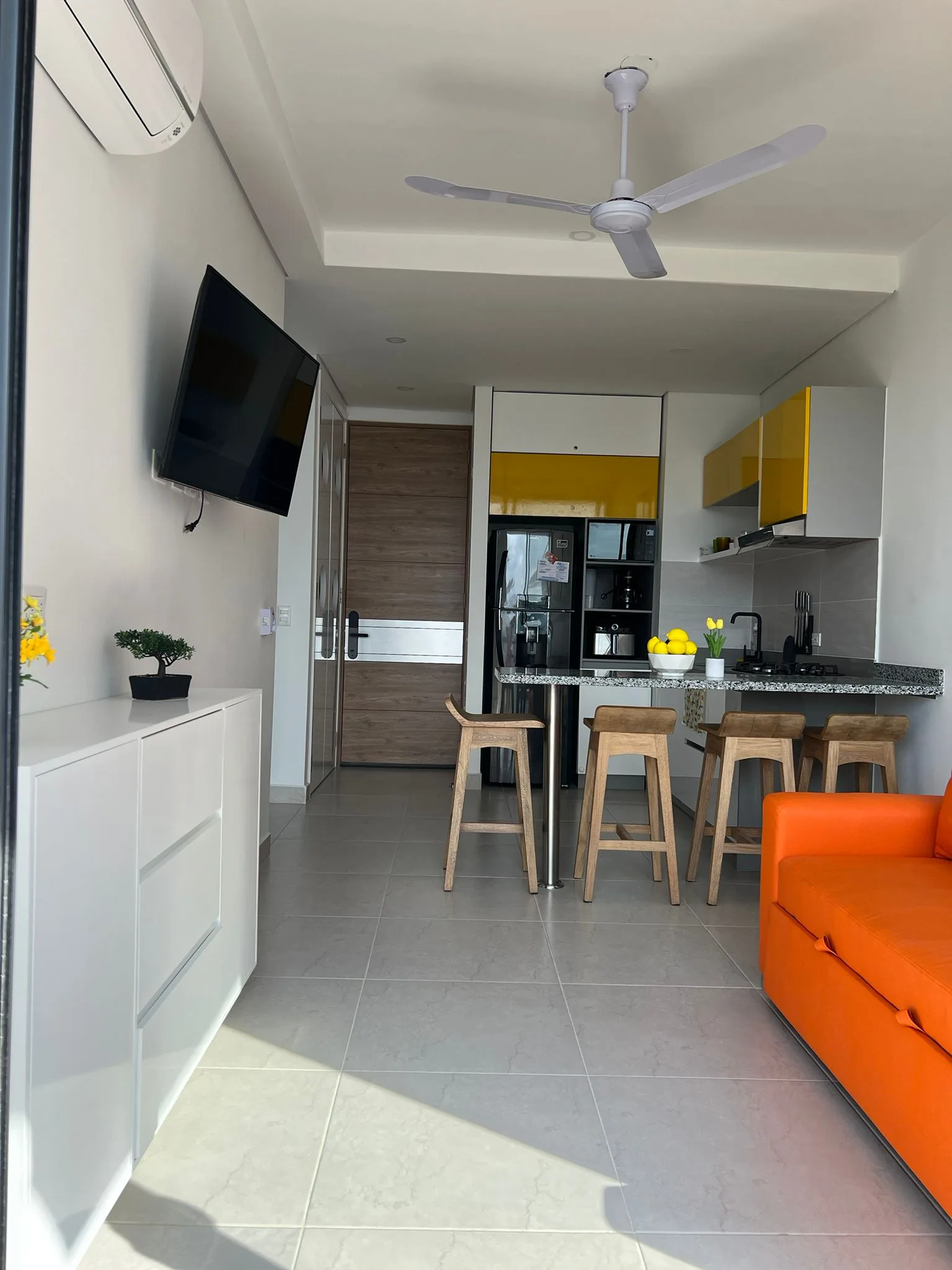 En arriendo amoblado, completamente dotado, Una habitacion, un baño. Lindo apartamento en conjunto Club house, dos piscinas, gimnasio, terraza en torre central, salon comunal, solarium, recepcion tipo hotel, salon de masajes, parques para niños, a 5 minutos de la playa caminando, hermoso conjunto residencial muy cerca a centro comercial Zazue, Carulla, cajeros automaticos, D1, ARA, Olimpica, cerca a via al aeropuerto, restaurantes. cuenta con aires acondicionados, ventiladores de techo, cocina abierta tipo americana, balcon con vistas muy bonitas. piso 12. parqueaderos comunales.