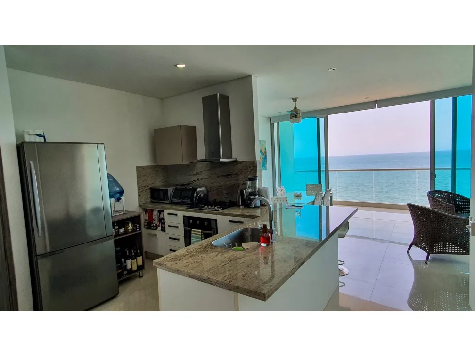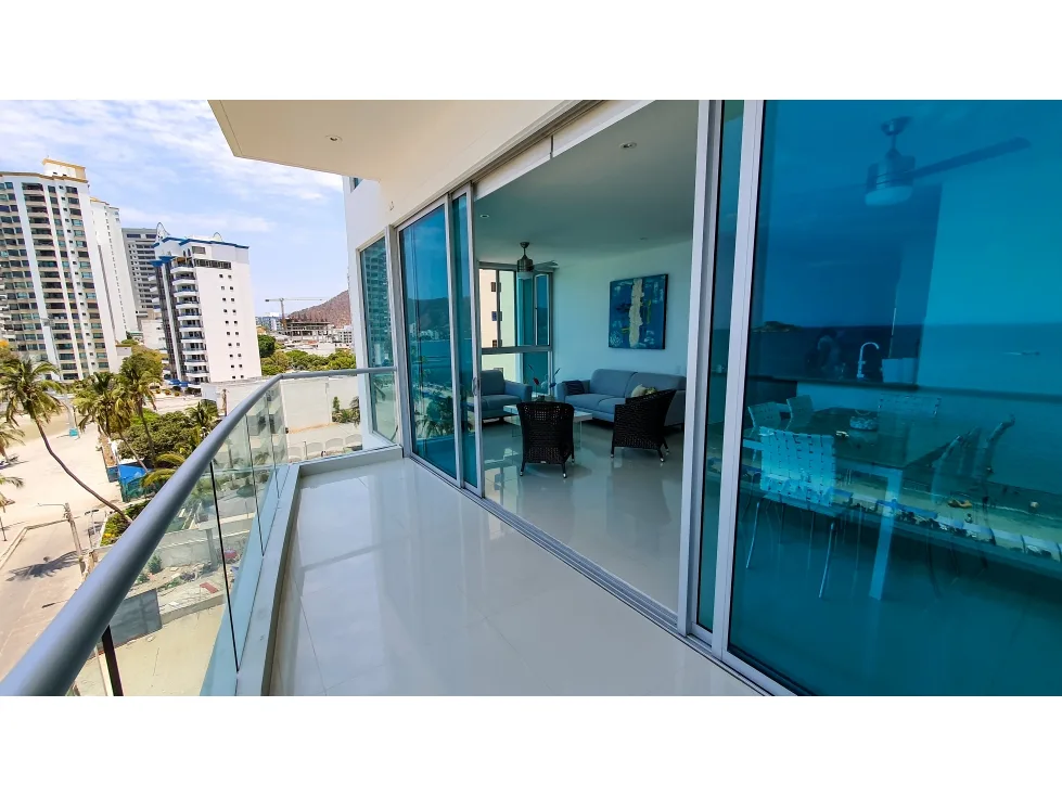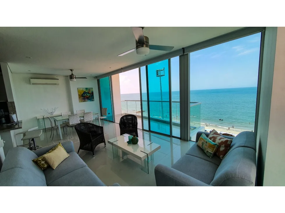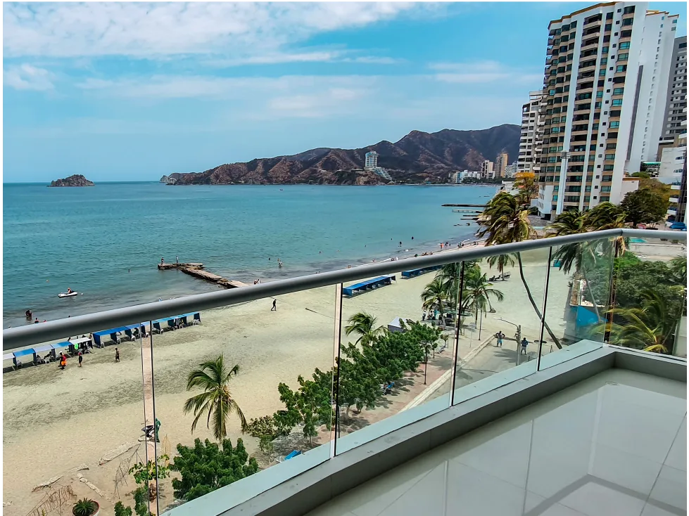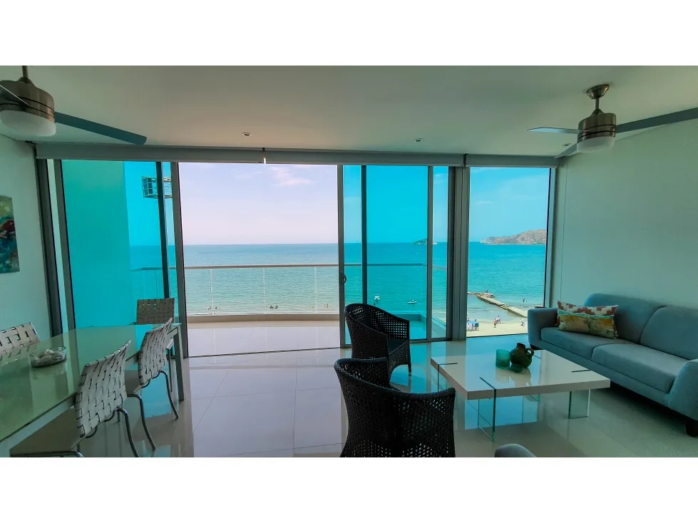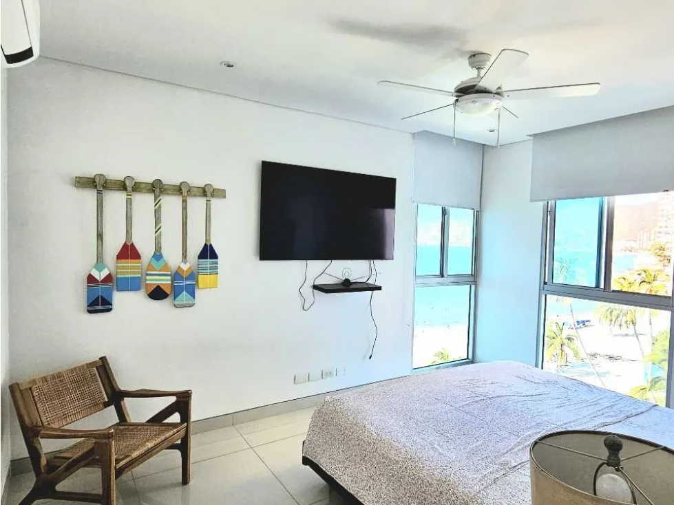Apto. completamente amoblado, edificio moderno, bien ubicado en el Rodadero sur. Primera línea de playa, vista frontal al mar. Internet alta Velocidad.