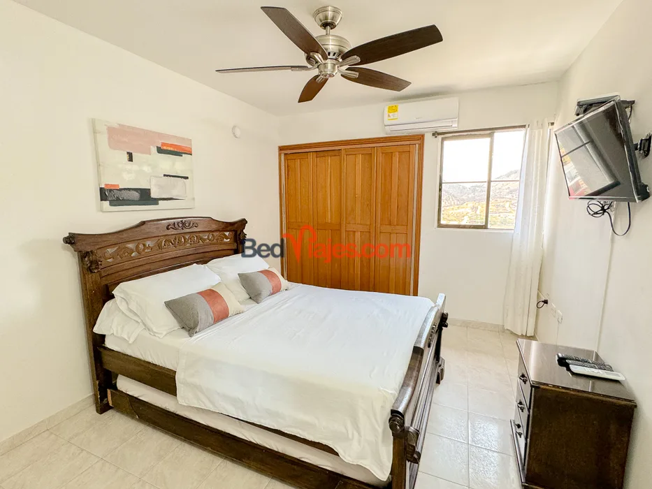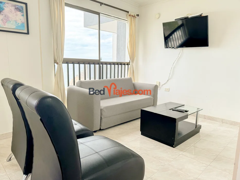 Apartamento con excelente vista al mar en el Rodadero por dias, 2 habitaciones cada una con aire acondicionado, 2 baños, sala, cocina con los utensilios para preparar alimentos, lavadora, balcòn con una hermona vista al mar, 1 parqueadero, a una cuadra de la playa, cerca al muelle para ir a playa blanca - acuario, rodeado de comercio restaurantes, tiendas, agencias de toures. se reservan minimo 2 noches, somo Bedviajes.