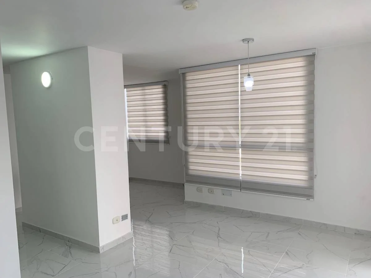 El apartamento cuenta con 2 habitaciones, sala comedor, piso de porcelanato, 2 baños, estar de TV, cocina con barra de Quarztone y suficiente espacio para guardar todos los utensilios, zona de oficio, balcón, el parqueadero es comunitario, la unidad cuenta con piscina, zona de mascotas, zona de juegos infantiles, parqueadero de visitantes, vigilancia las 24 horas, el apartamento se entrega con cortinas, aire acondicionado en la habitación principal y calentador de agua, estrato 4. _x000D_