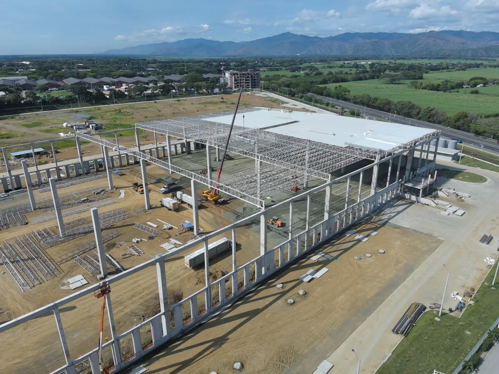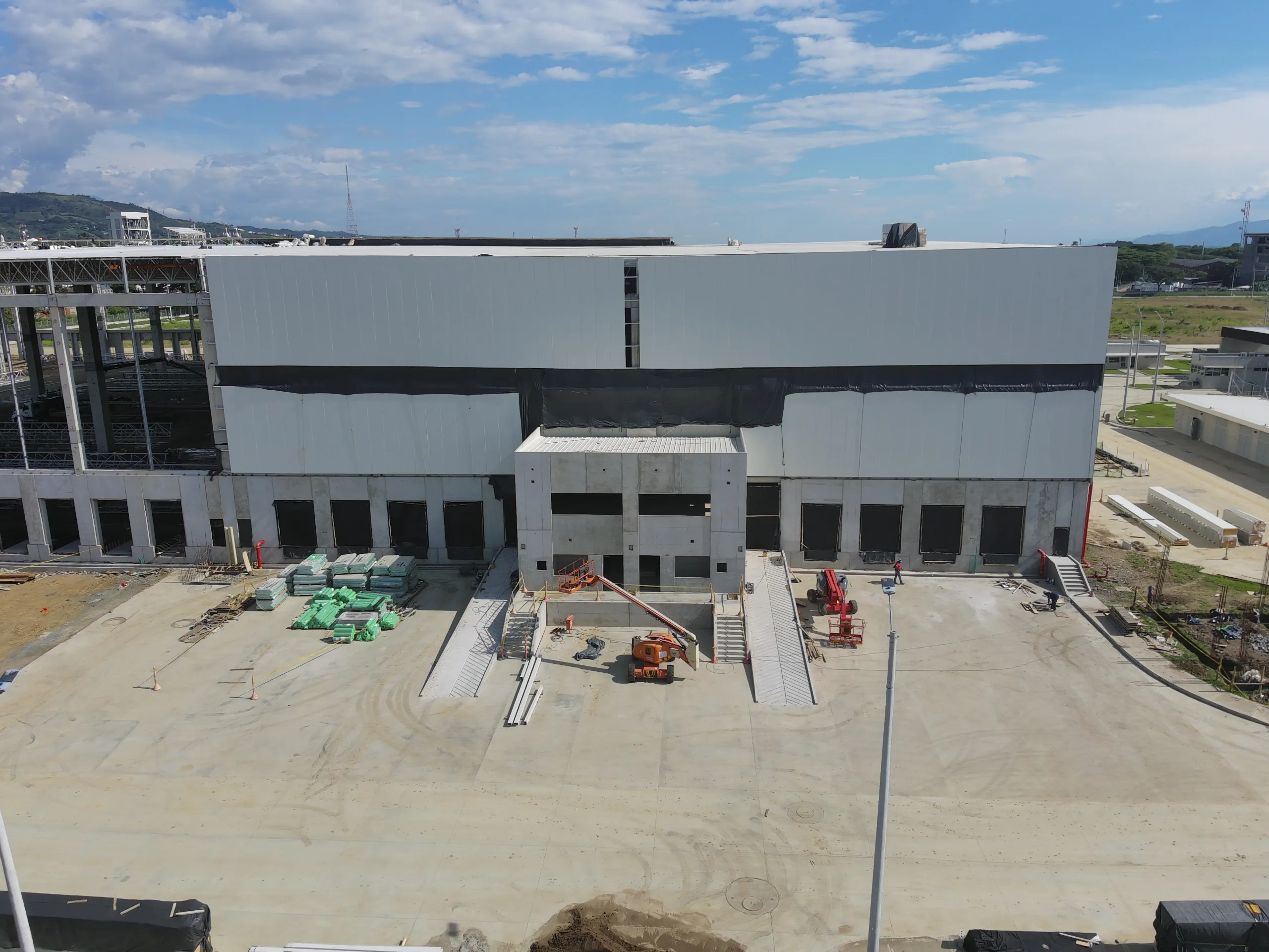 Bodegas en arrendamiento en el Parque Logístico Buga, con áreas desde 1.897 m² hasta 26.128 m², diseñadas para operaciones de alta eficiencia. Las construcciones cuentan con altura libre de 18 metros, columnas en hormigón estructural, muros perimetrales de 5,30 metros y cerramientos en paneles de poliuretano. Los pisos industriales son postensados con resistencia de 10 toneladas por m², adecuados para tráfico pesado. Incorporan diseño bioclimático que permite una temperatura interior entre 23°C y 24°C en horas de máxima radiación solar, gracias a la cubierta termoaislada en poliuretano, paredes del mismo material, ventilación cruzada y paneles solares instalados en techo. La iluminación LED cumple con los estándares de lux/m² requeridos por la normativa. Disponen de 56 muelles a desnivel con rampas niveladoras y puertas tipo Metecno en poliuretano de operación manual, así como 14 accesos a nivel con rampas en concreto y puertas de camión de 4,50 m de altura. Cuentan con red contra incendios compuesta por rociadores automáticos y gabinetes. Cada bodega posee suministro eléctrico trifásico con transformador independiente de 44 KVA.