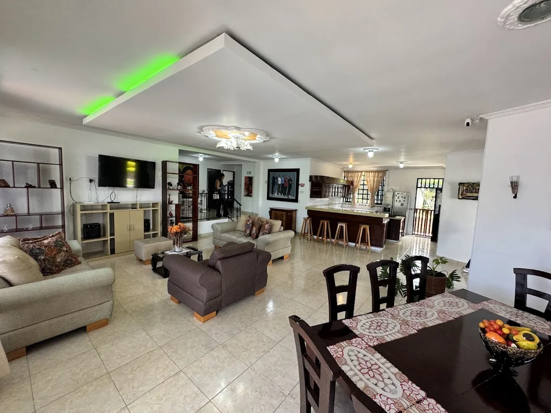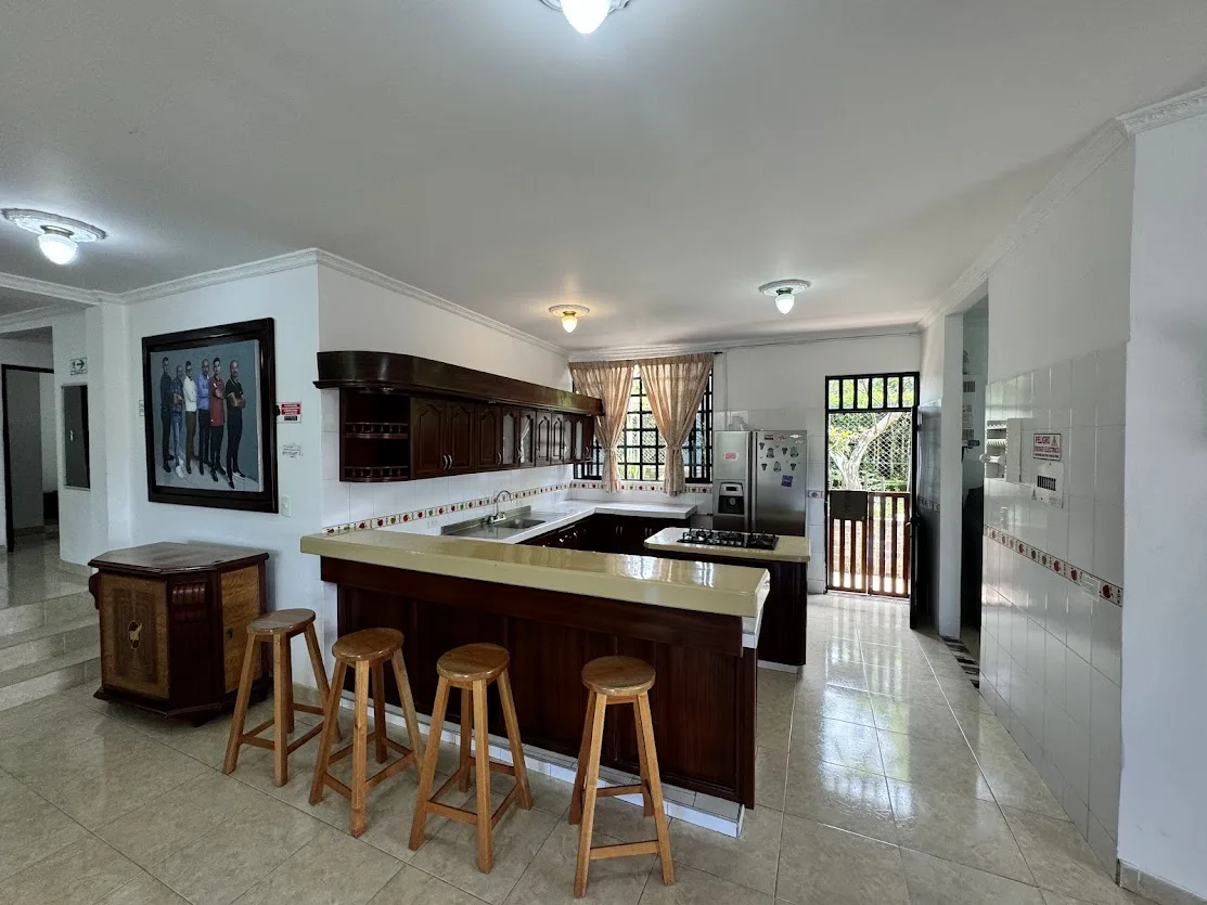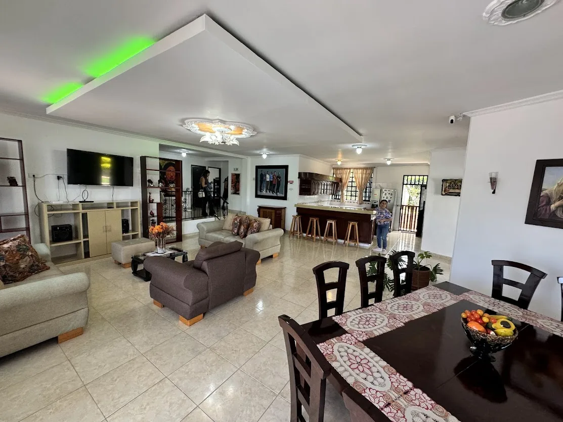 Zonas de diversión y descanso: Disfruta de la piscina refrescante, un salón social para reuniones, el kiosko con BBQ para parrilladas memorables, una cancha, billar y cancha de tejo. Si necesitas un poco de privacidad, la propiedad cuenta con un apartamento externo, equipado con una habitación, baño y cocina integral.