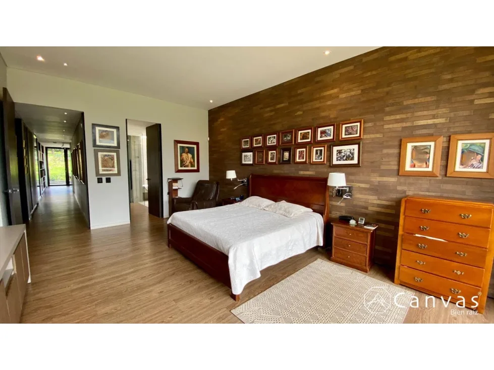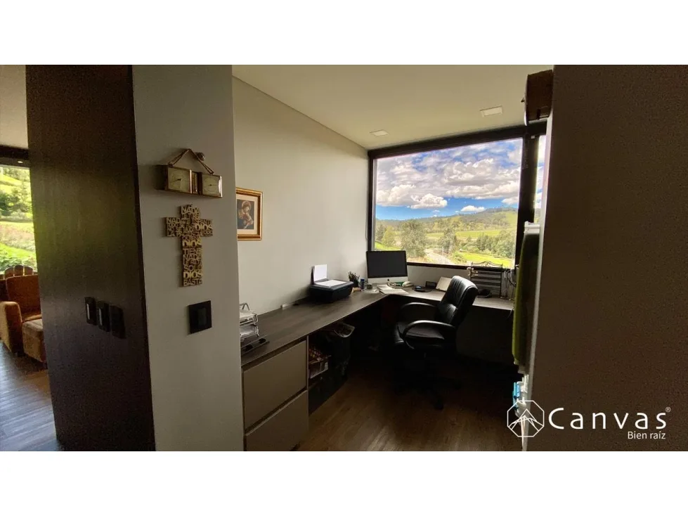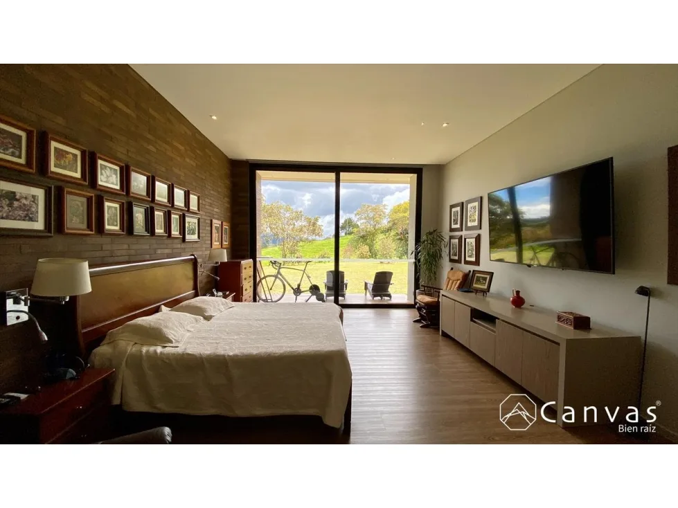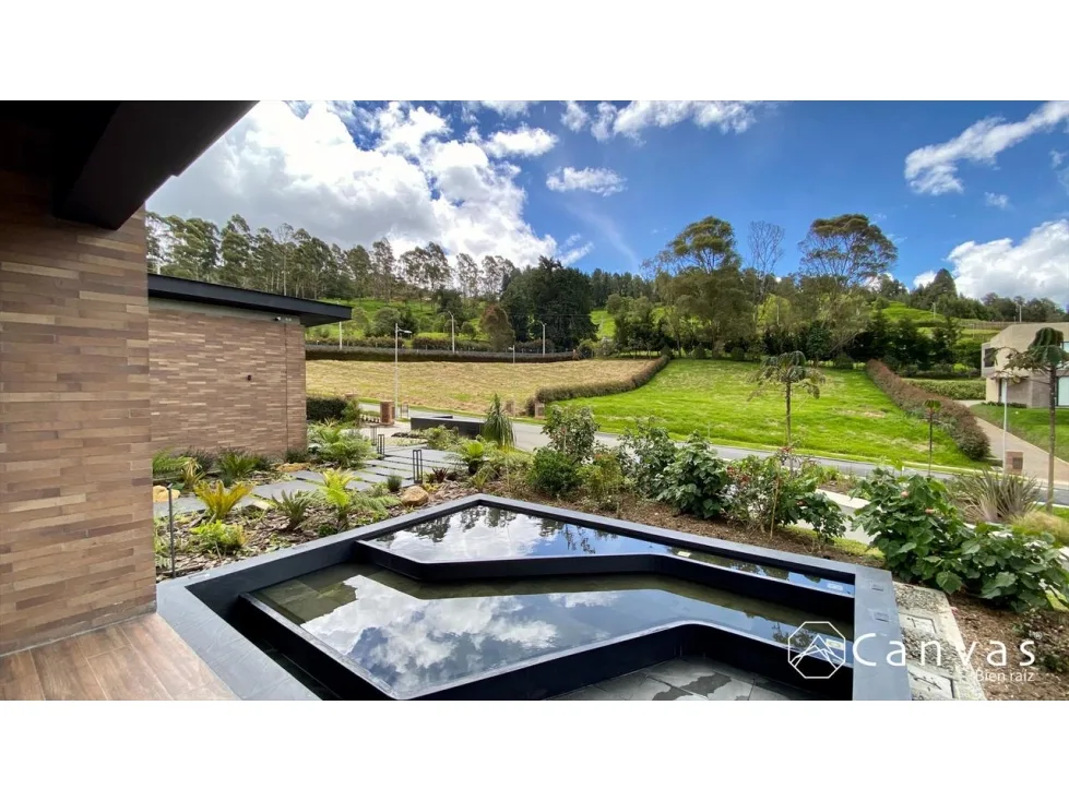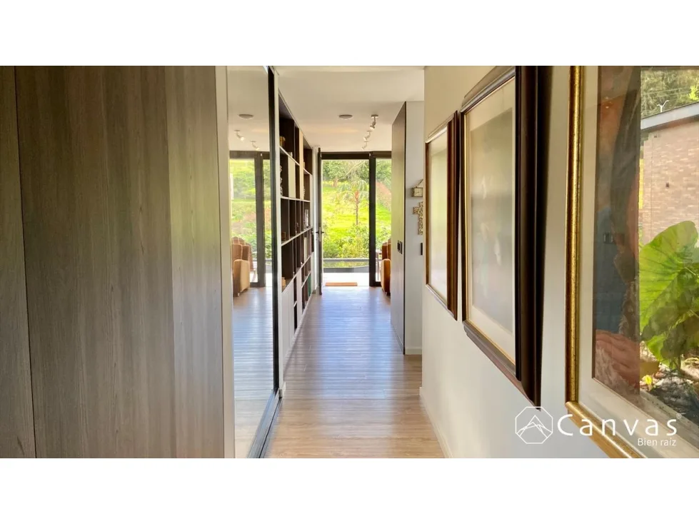 Hermosa casa en parcelación; ubicada en una zona exclusiva y campestre en el Alto de Las Palmas, sector La Acuarela. Cuenta con dos niveles, sala, chimenea a gas, comedor, cocina integral abierta con isla y despensa; baño social, 3 habitaciones, cada una con baño, cuarto de servicio con baño, estar, biblioteca; 2 parqueaderos cubiertos, 3 parqueaderos descubiertos y cuarto útil. La casa tiene domótica, luces, teatro, sonido y cámaras de vigilancia; puerta principal con huella o tarjeta de seguridad; estanque con cascada, energía solar, conexión a gas por red, cortinas eléctricas con control, ventanería de cierre europeo y vidrios con doble cámara. La parcelación está conformada por 31 lotes, con portería, salón social, gimnasio dotado, sala lounge con chimenea, juegos infantiles, parqueadero de visitantes y planta de tratamiento para aguas residuales. Área total: 1.997 m2, construidos: 455 m2, predial anual: $4.630.198 administración: $760.800.