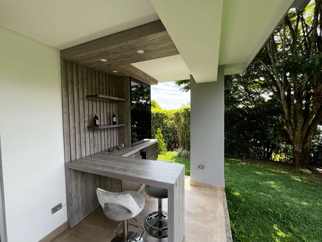 - Características Interiores: Aire Acondicionado, Balcón, Barra estilo americano, Baño Auxiliar, Baño Independiente, Closet, Cocina tipo Americano, Comedor auxiliar, Depósito / Bodega, Estudio, Hall de Alcobas, Instalación de gas, Kiosko, Pozo de agua natural, Rio / Quebrada cercano(a), Vista panorámica, Zona de Camping, Árboles frutales