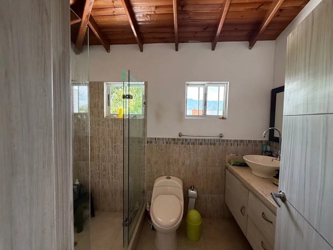- Características Interiores: Balcón, Barra estilo americano, Baño Auxiliar, Baño Independiente, Citófono, Closet, Cocina tipo Americano, Depósito / Bodega, Estudio, Hall de Alcobas, Instalación de gas, Kiosko, Oficina de negocios, Pozo de agua natural, Rio / Quebrada cercano(a), Vista panorámica, Zona de Camping, Árboles frutales