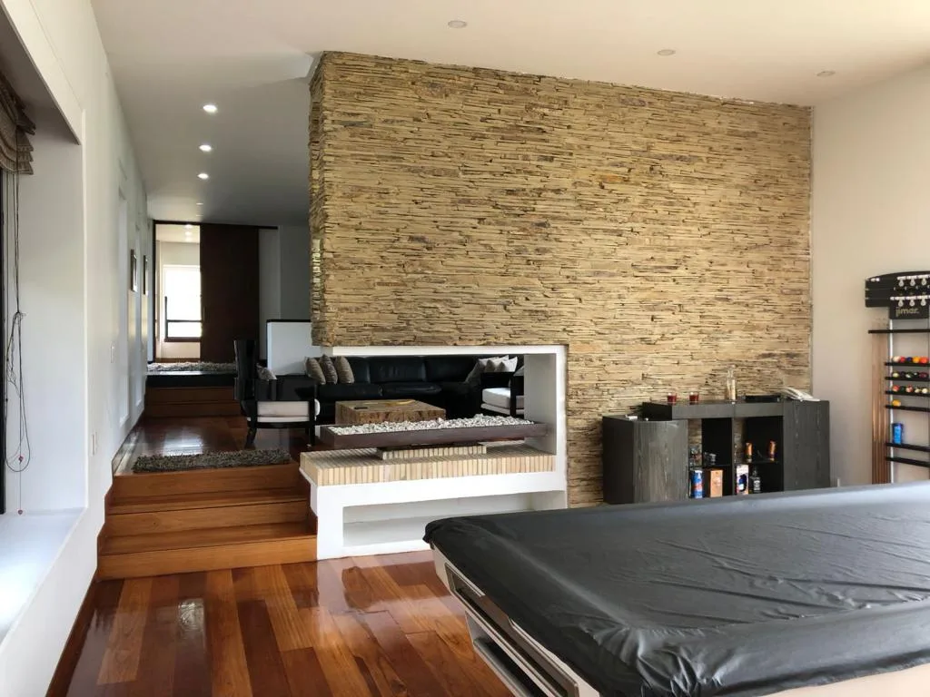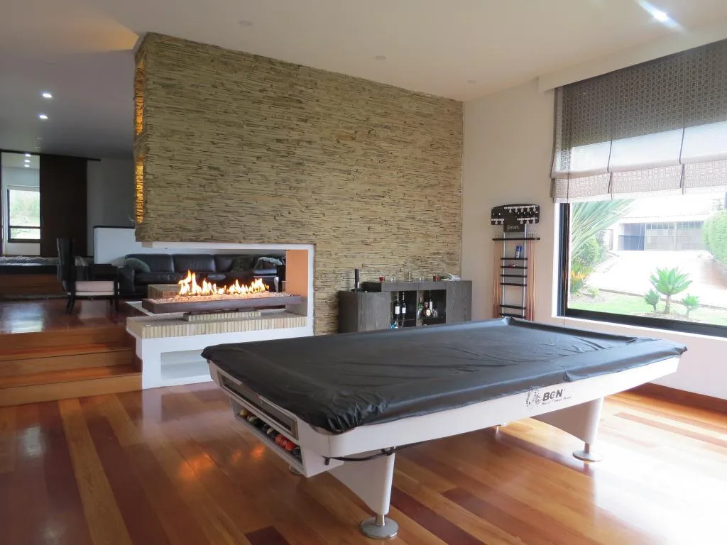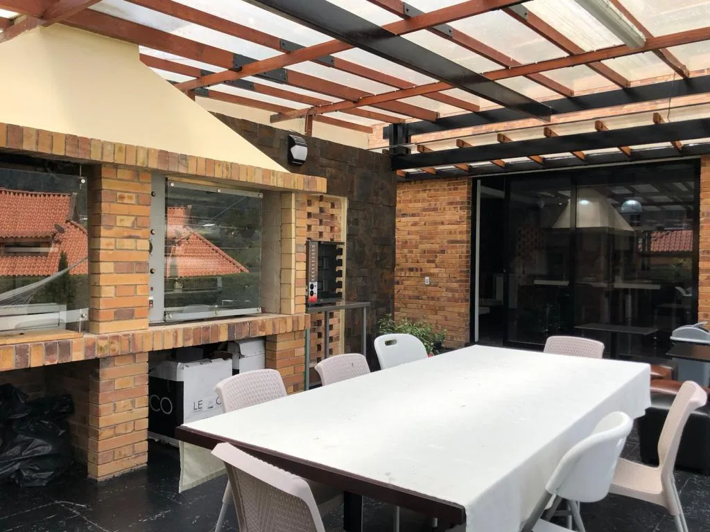 Casa AMOBLADA exterior de 2 pisos CON PREMIO ARQUITECTÓNICO, área del lote 1.756 m2, área construida 761.12, iluminación natural, CASA PRINCIPAL: PRIMER PISO: (área 269.25 m2), cocina integral a gas y chimenea, sala comedor independiente con chimenea, un baño social, estudio, cuarto y baño de servicio. SEGUNDO PISO: (área 269.25 m2), alcoba principal cuenta con (Chimenea, baño, Jacuzzi, Balcón Y Walking Closet), 3 alcobas con closet y baño privado. CASA DOS: (área 36.17) zona de lavandería independiente, (área 115.90 m2) 12 parqueaderos privados (7 cubiertos y 5 descubiertos), más ÁREA SOCIAL (70.55 m2) Gym, sauna, billar con bar, patio, zona BBQ. Conjunto cuenta con zonas verdes, vigilancia 24x7.