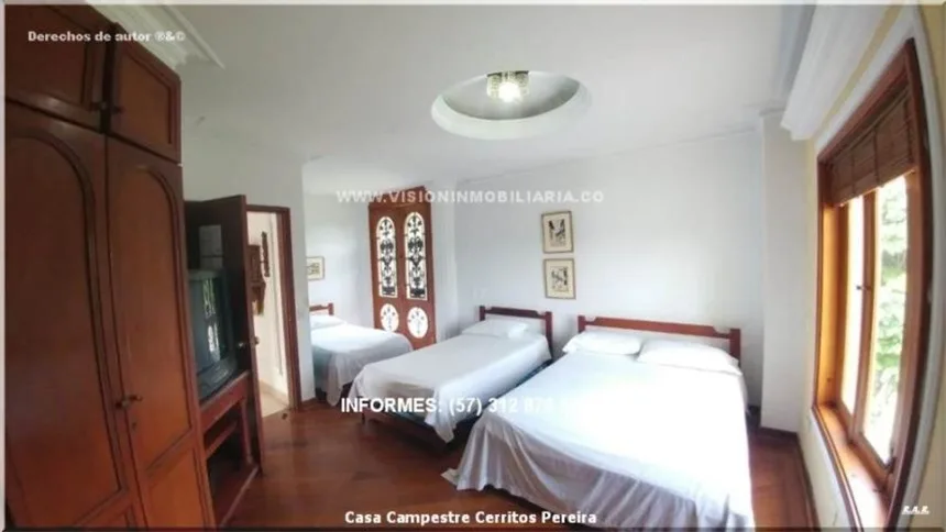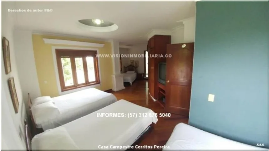 Hermosa casa campestre, con 5 cuartos y 11 camas hay posibilidad de expandir la capacidad de camas para tu familia y amistades, seís baños, piscina para adultos y piscina para niños, jacuzzy para relajarte en tus días cansados y disfrutar con tus amigos, amplia cancha de fútbol, hermosas palmeras y zonas verdes muy amplias sombreadas por frondosos árboles y guaduales, este paraíso queda sobre la avenida principal por lo que su llegada es de muy fácil, incluyendo muy buen transporte público de la ciudad, consta de 500 m2 construidos techados, 9.000 m2 lote, ¡un paraíso encantador para usted!. ¡Querrás hospedarte aqui y disfrutar del paisaje y su tranquilidad!.