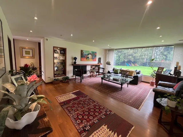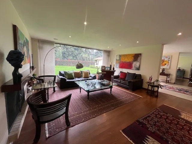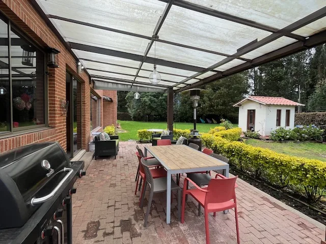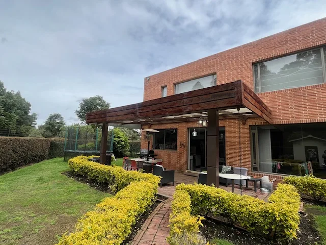Hermosa casa campestre con amplios estacios, cuenta con 5 habitaciones con baño, CBS, 2 estudios, 1 family, hall para tv, sala y comedor independientes,chimenea a leña,cocina con comedor auxiliar y alacena,BBQ cubierto con punto de gas natural,baño social, cava, casa de mulecas,zona de lavanderia, doble porteria con viligancia 24 horas, amplias zonas verdes.