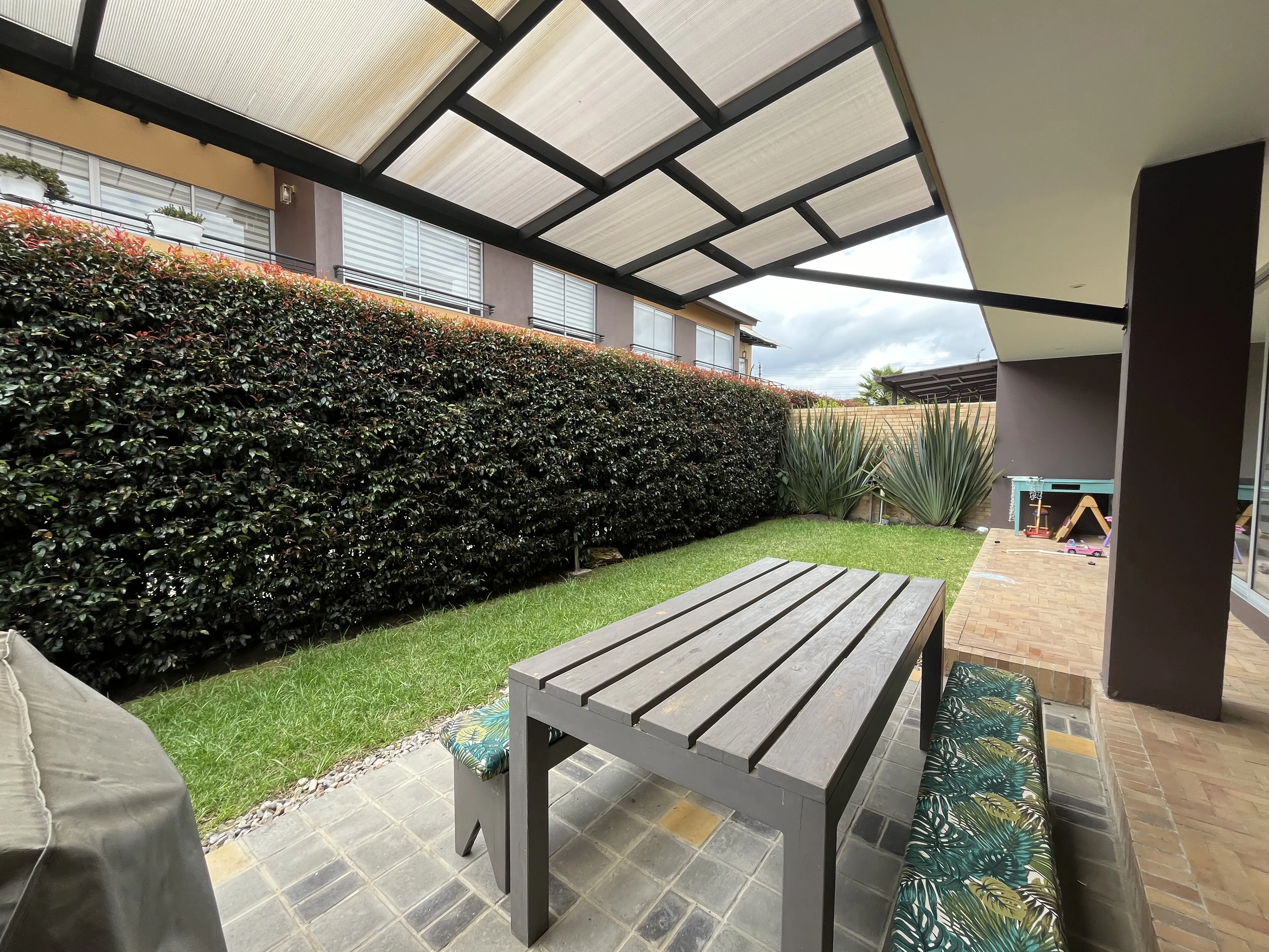 - Características Exteriores: Cancha de Tennis, Canchas Deportivas, Circuito cerrado de TV, Cuarto de servicio, En conjunto cerrado, Garaje(s), Gimnasio, Jardín, Parqueadero Visitantes, Patio, Piscina, Portería / Recepción, Salón Comunal, Vigilancia, Zona de lavandería, Zona Infantil, Zonas Verdes