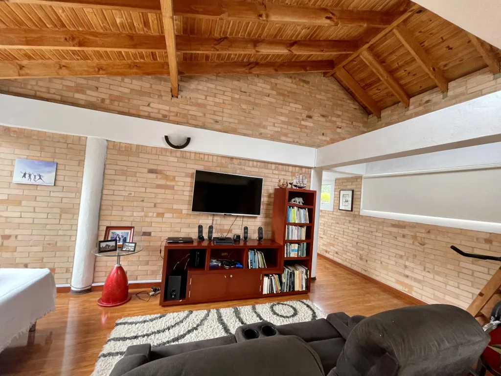 Casa de dos pisos ubicada en la vereda chuntame sector de mayor valorización de Cajicá, ideal para una familia que le guste de vivir muy cerca a todo pero alejada del ruido de la ciudad, con área construida de 236m2 y área total del lote de 386m2, la casa tiene un estilo moderno no convencional, llena de espacios innovadores y con el concepto de arquitectura bioclimática, tiene calentadores solares y sistema de recolección de agua lluvias completamente automatizado.