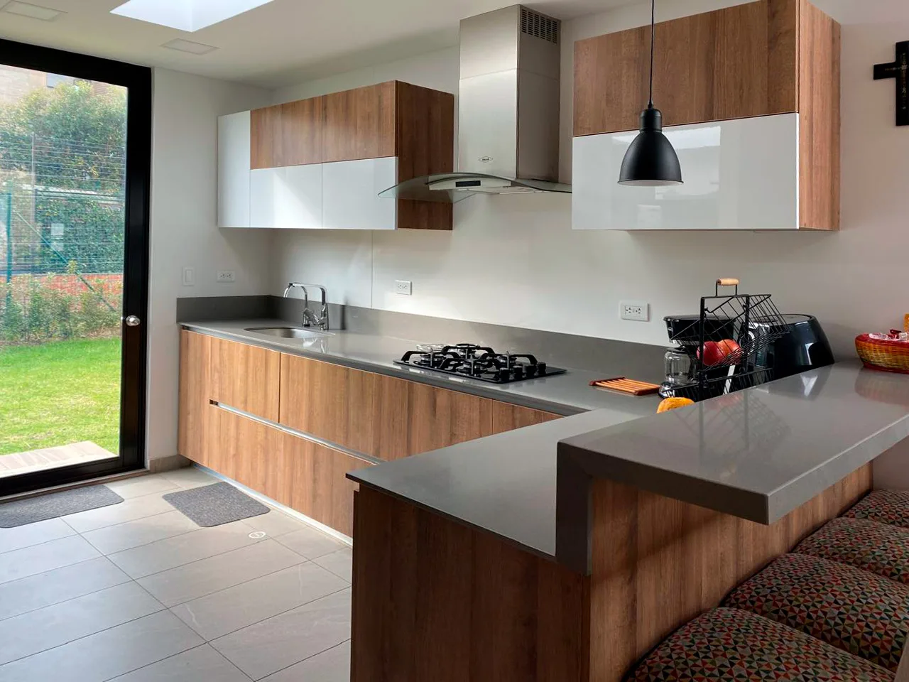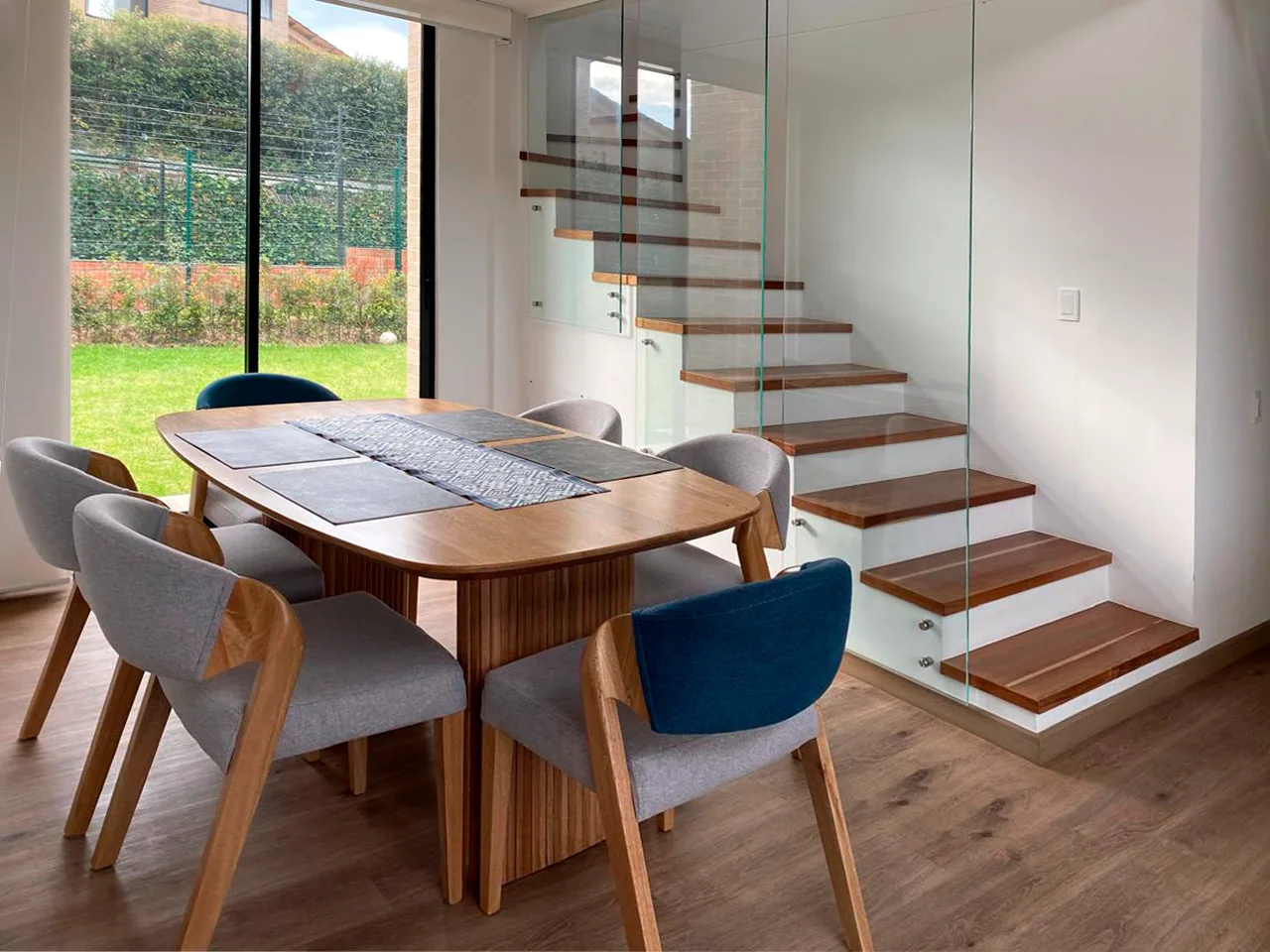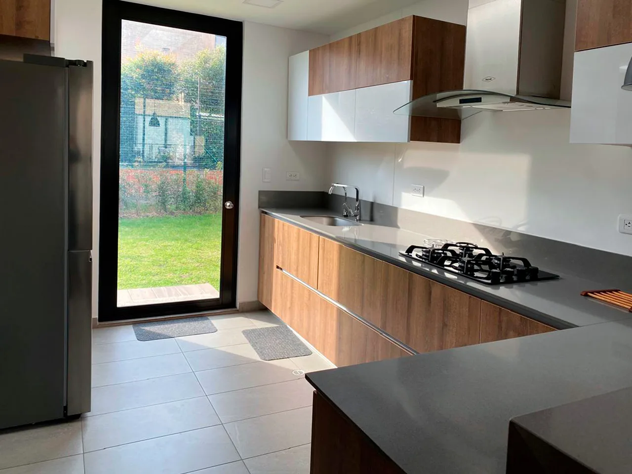 En el primer piso encontrarás un acogedor hall de entrada con acceso al baño social; sala con doble altura y terraza y comedor independiente; la cocina abierta es amplia y funcional con iluminación y ventilación natural y la zona de ropas independiente ambas con iluminación cenital crean espacios naturalmente luminosos. También cuenta con un útil depósito bajo la escalera y área verde en 3 costados de la casa.