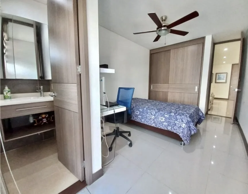 - Características Interiores: Aire Acondicionado, Balcón, Barra estilo americano, Baño Auxiliar, Calentador, Citófono, Cocina Integral, Comedor auxiliar, Depósito / Bodega, Despensa, Estudio, Hall de Alcobas, Instalación de gas, Piso en Baldosa / Mármol, Planta Eléctrica, Sauna / Turco / Jacuzzi