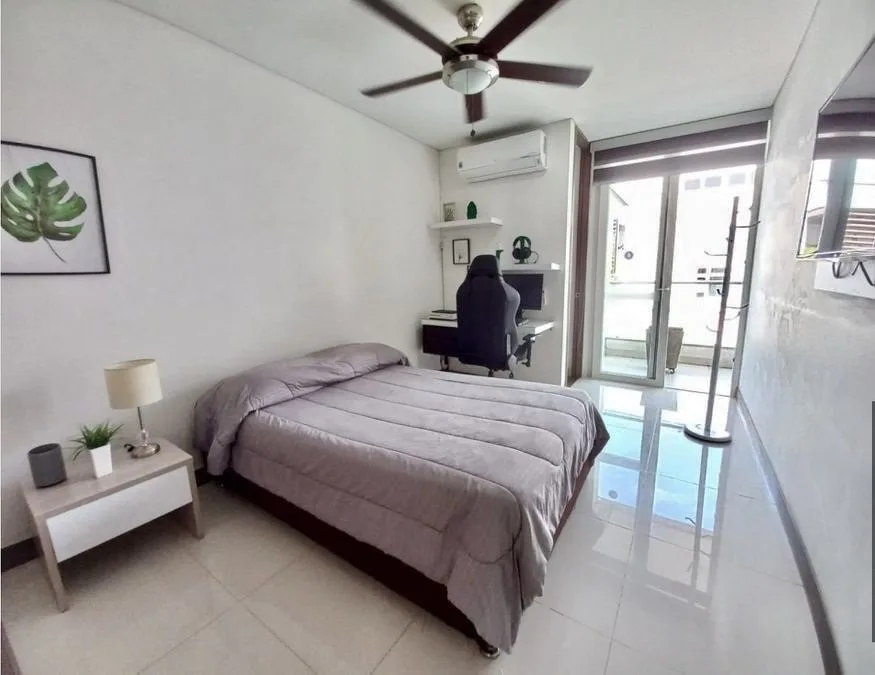 Habitación principal con baño, vestier y balcón amplio.