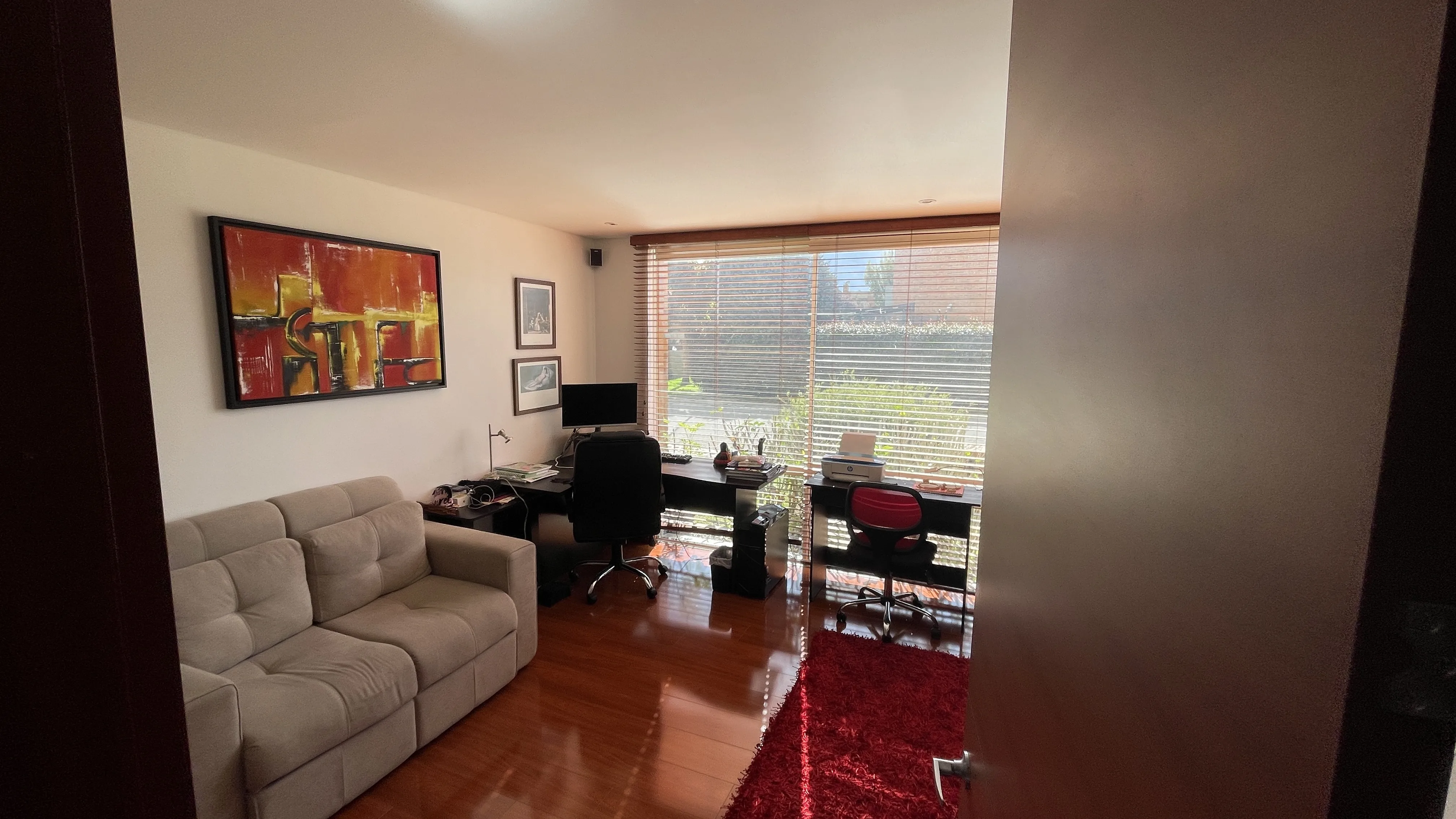 Al ingresar, serás recibido por una amplia sala y comedor integrados, perfectos para reuniones familiares. La cocina, con diseño abierto y modernos electrodomésticos, es el corazón del hogar. Además, cuenta con un estudio con ventanales de piso a techo, ideal para trabajar desde casa.