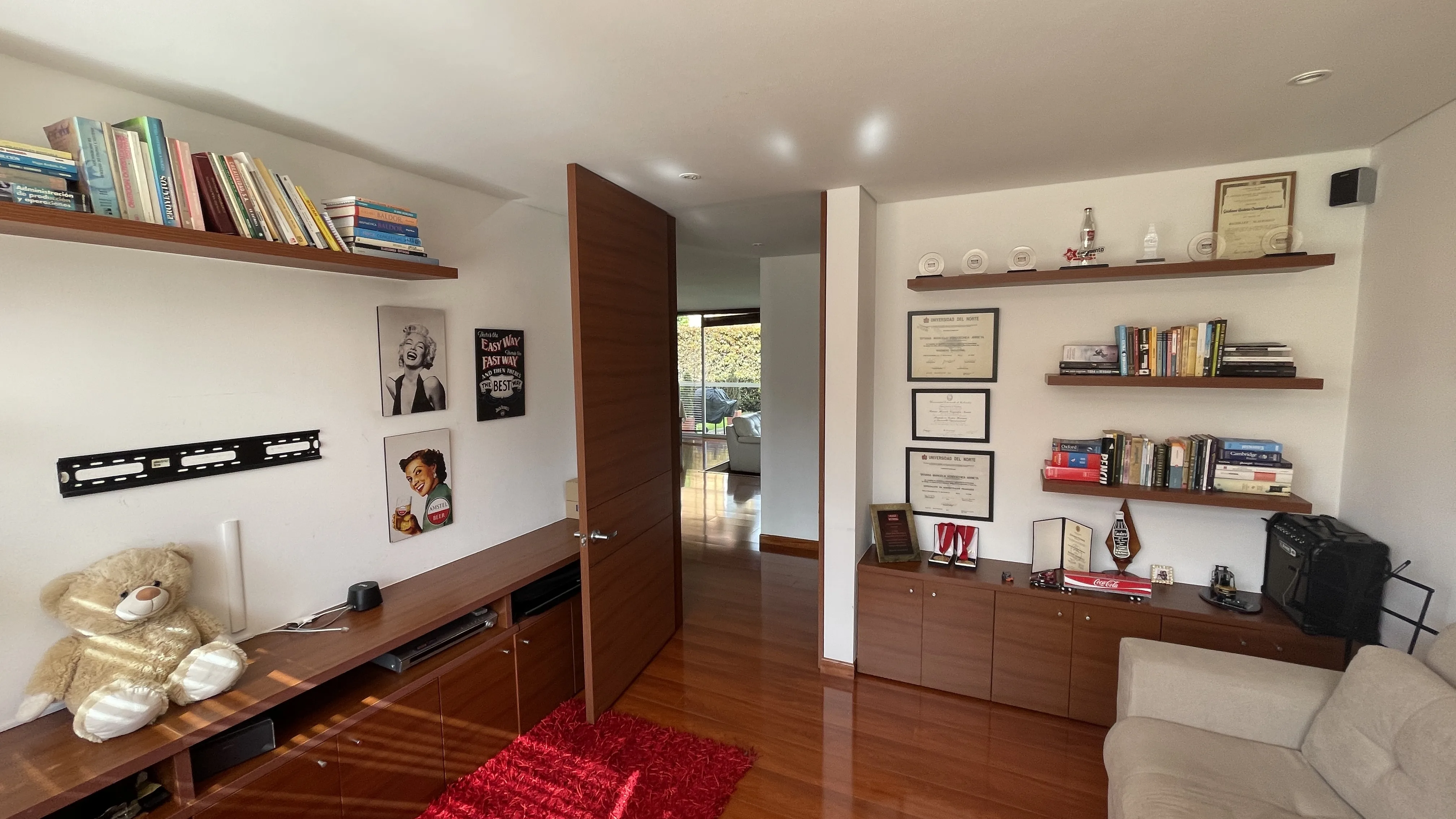 Subiendo al segundo piso, encontrarás tres habitaciones. La principal tiene un amplio closet y baño en suite. Las otras dos habitaciones son perfectas para la familia, cada una con su propio baño. Además, hay una sala familiar perfecta para noches de cine y lectura.
