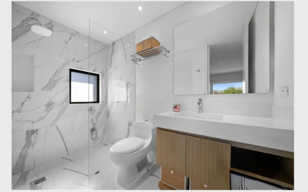 En el segundo piso, la zona privada cuenta con tres habitaciones, todas con baño privado; la principal con walk-in closet, además de un estudio o cuarta habitación y un estar de TV.