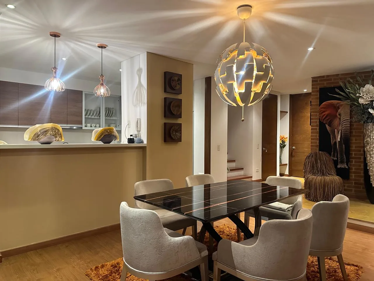 - Características Interiores: Balcón, Barra estilo americano, Baño Auxiliar, Calentador, Chimenea, Citófono, Cocina Integral, Cocina tipo Americano, Comedor auxiliar, Depósito / Bodega, Despensa, Estudio, Hall de Alcobas, Instalación de gas, Sauna / Turco / Jacuzzi, Terraza, Vista panorámica